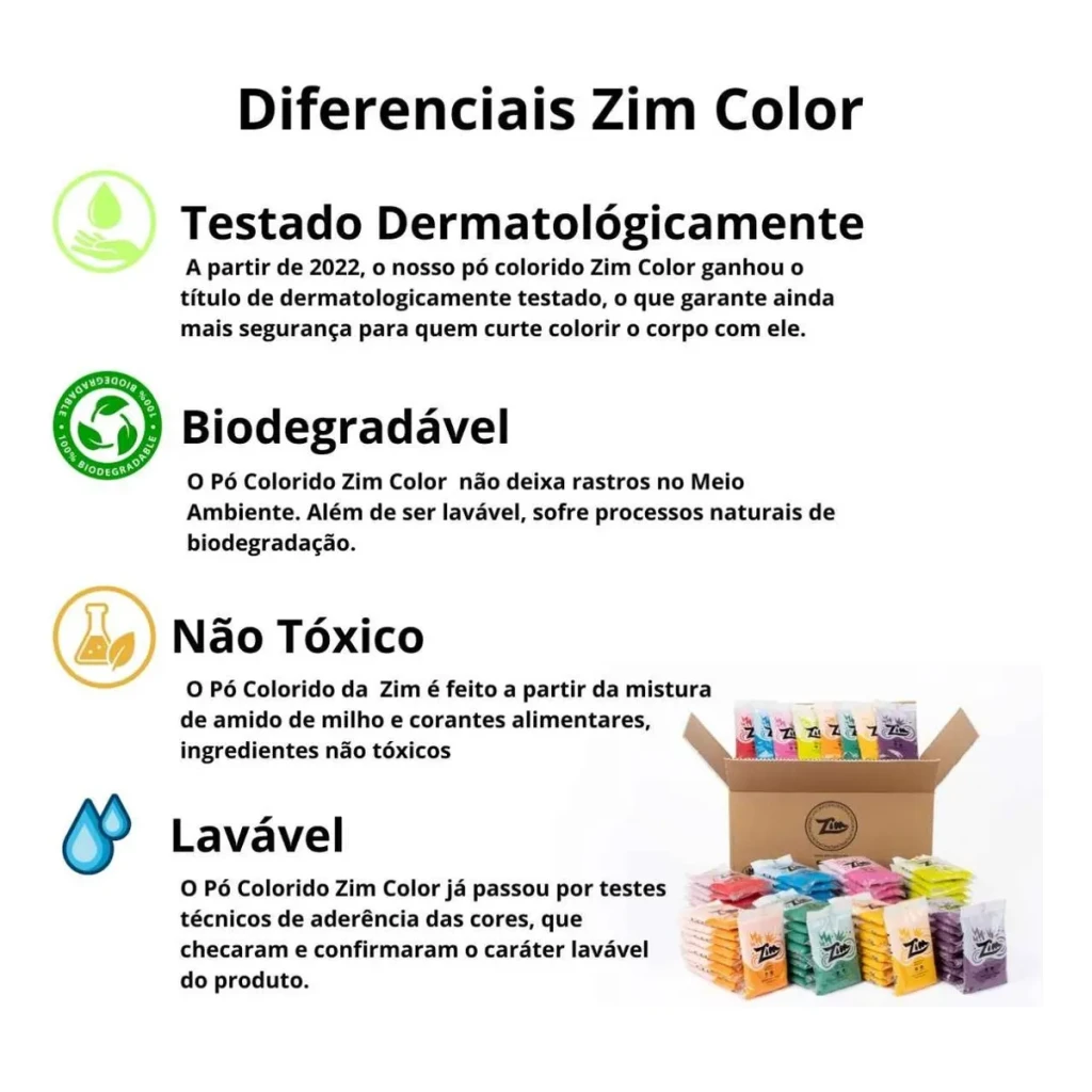 O Kit com 4 pacotes de Pó Colorido Zim Color é a escolha perfeita para deixar seu Chá de Revelação cheio de emoção e diversão. Cada pacote contém 100g de pó colorido, fácil de usar e seguro para todos.
