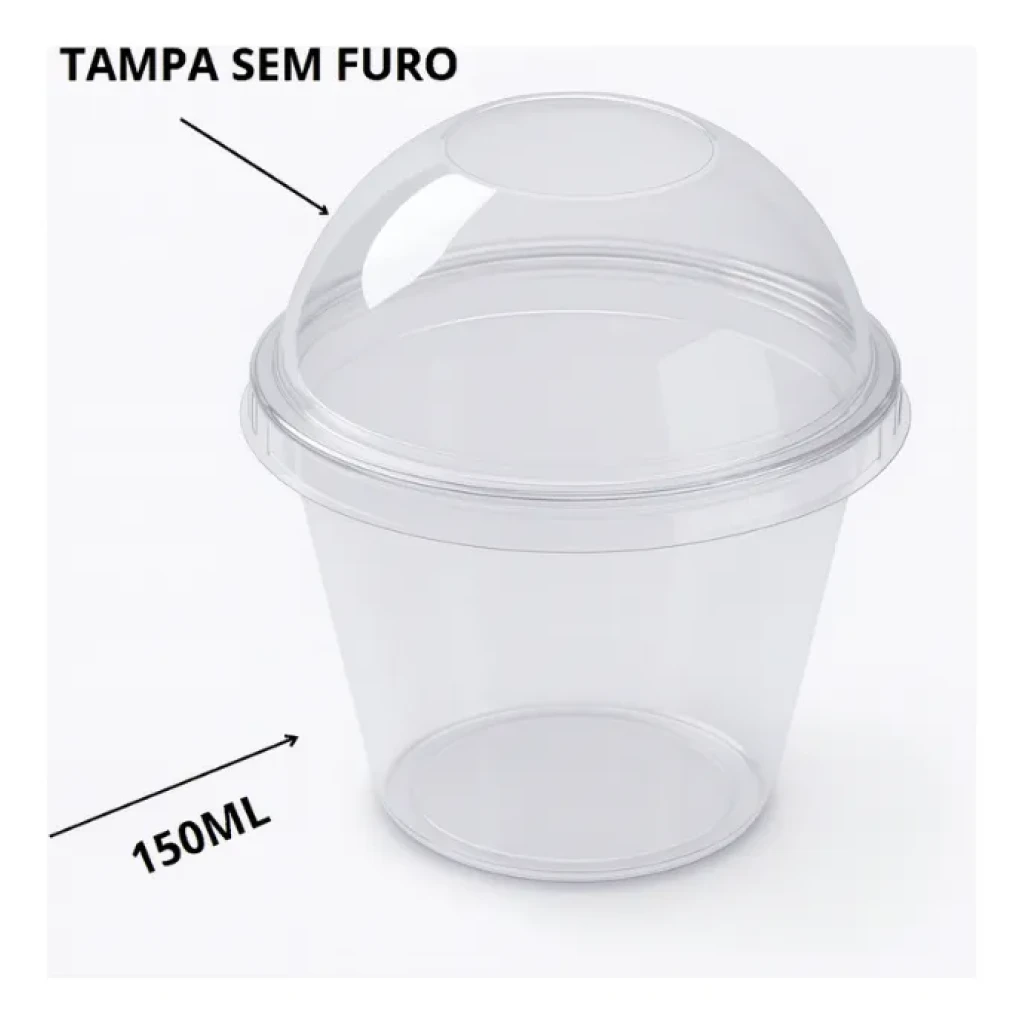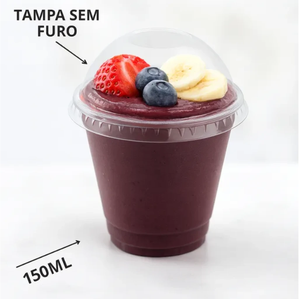 Kit de Copos 150ml com Tampa Bolha – 50 Unidades