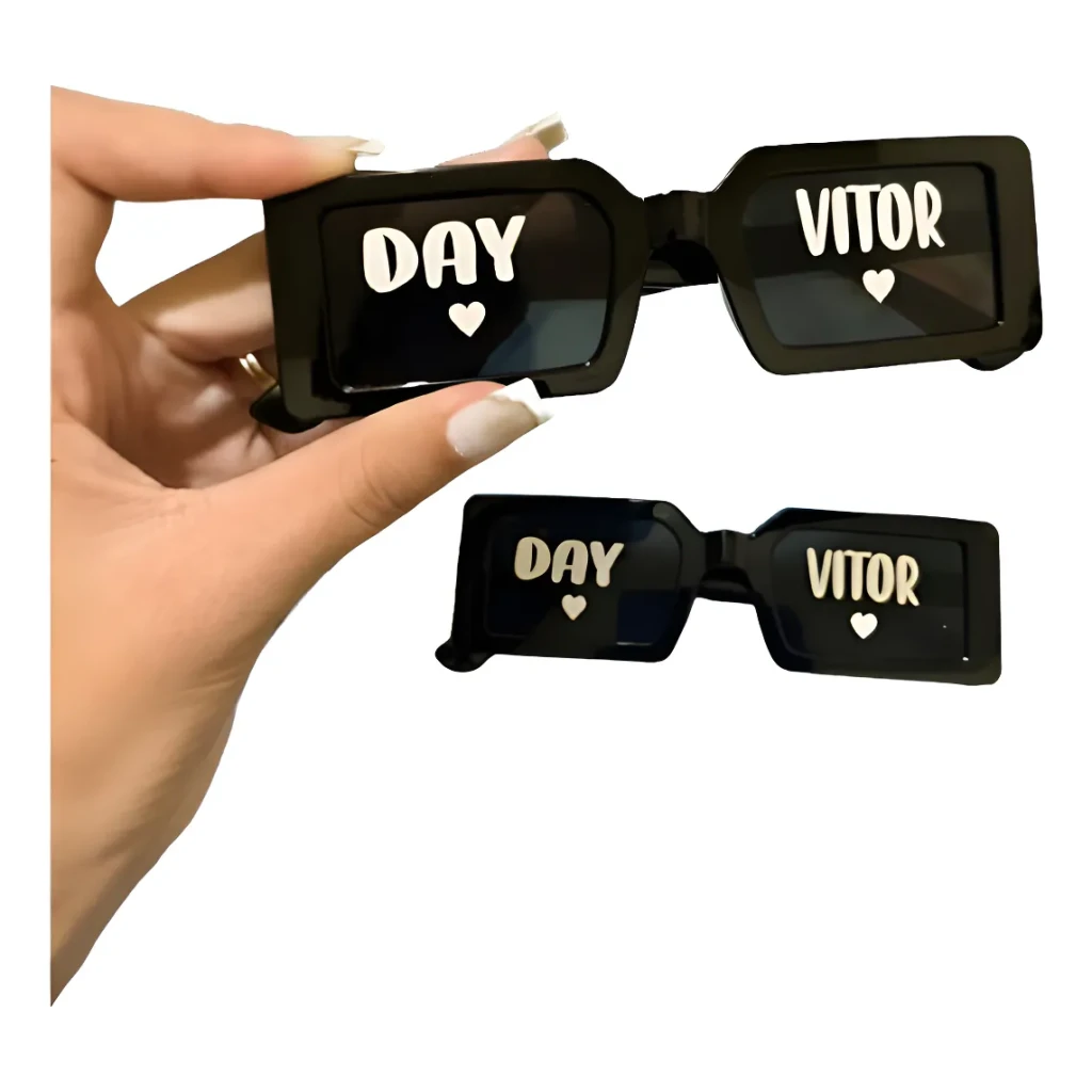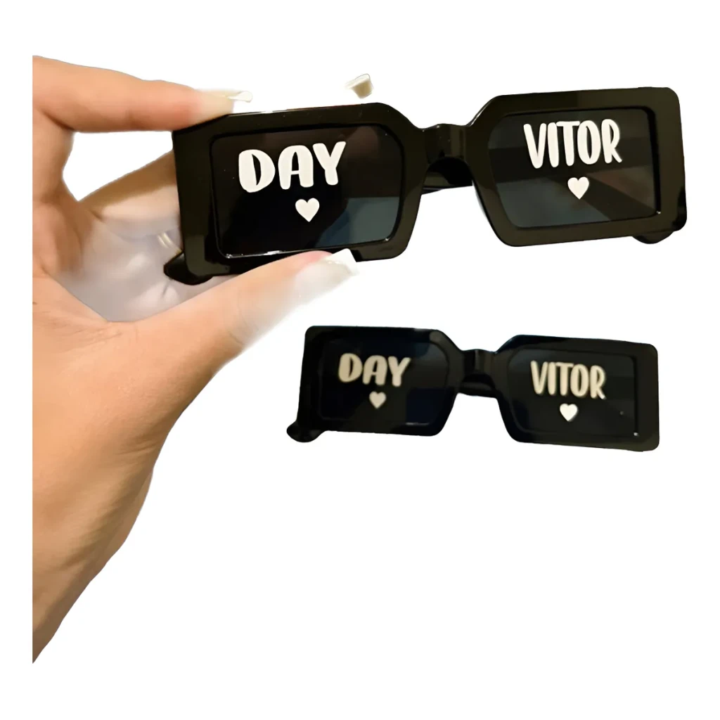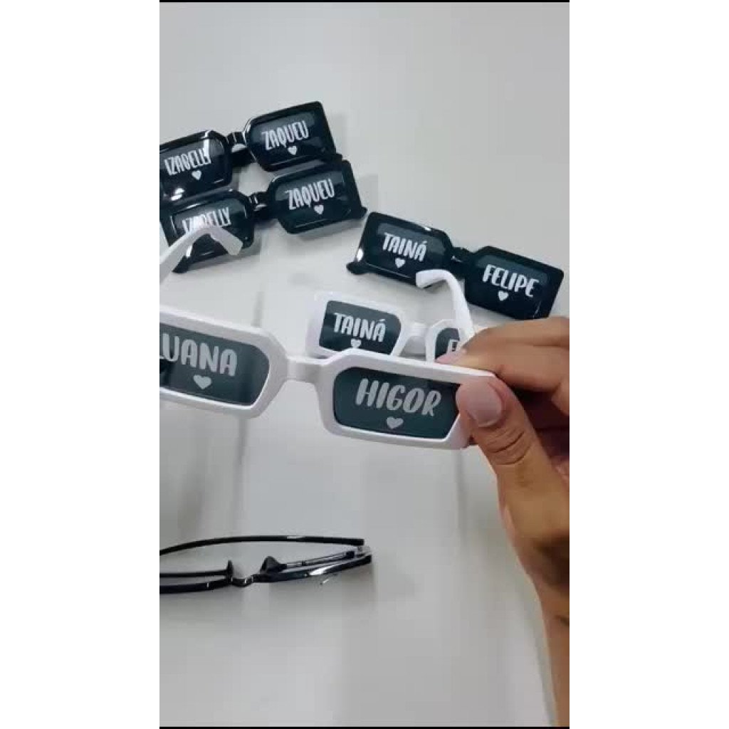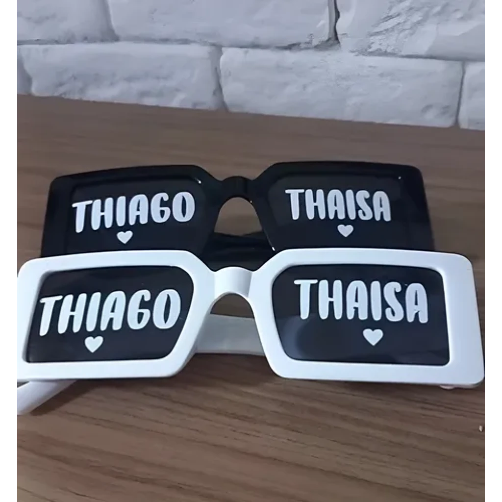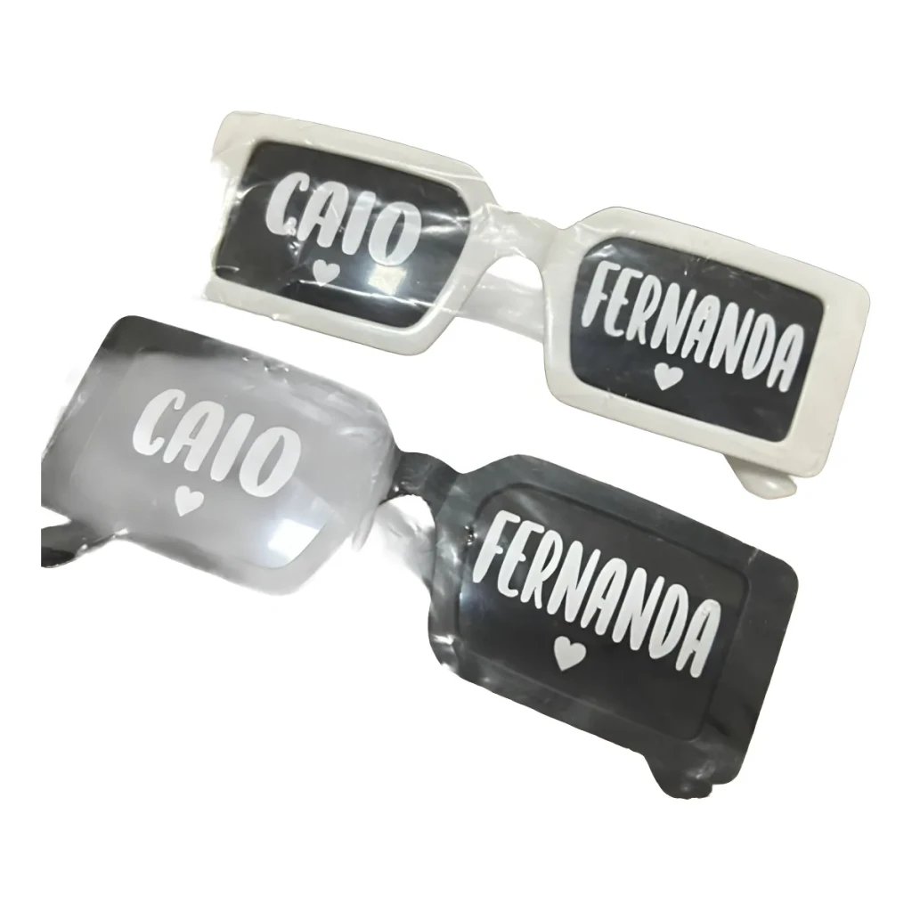 Feitos com ótima qualidade, esses óculos são personalizados em adesivo vinil branco, que não apaga. Perfeitos para registrar momentos inesquecíveis!