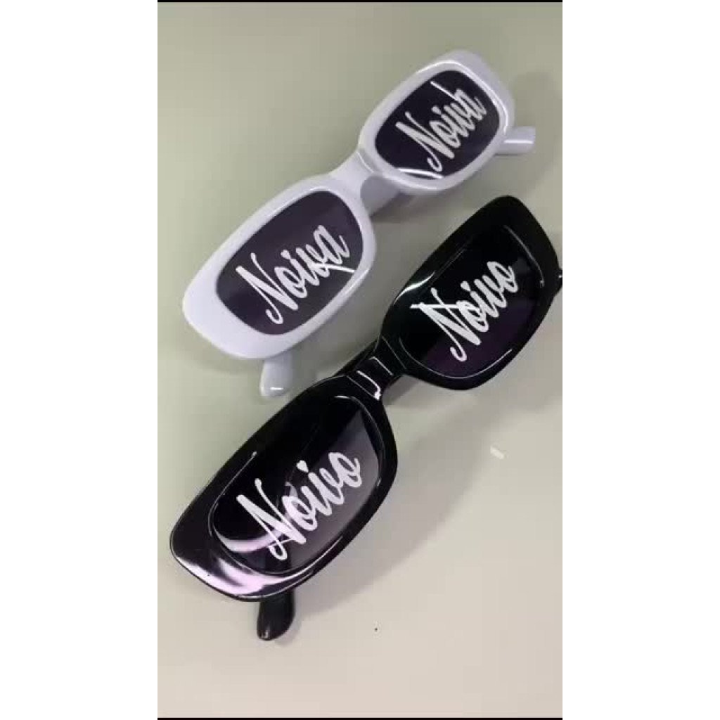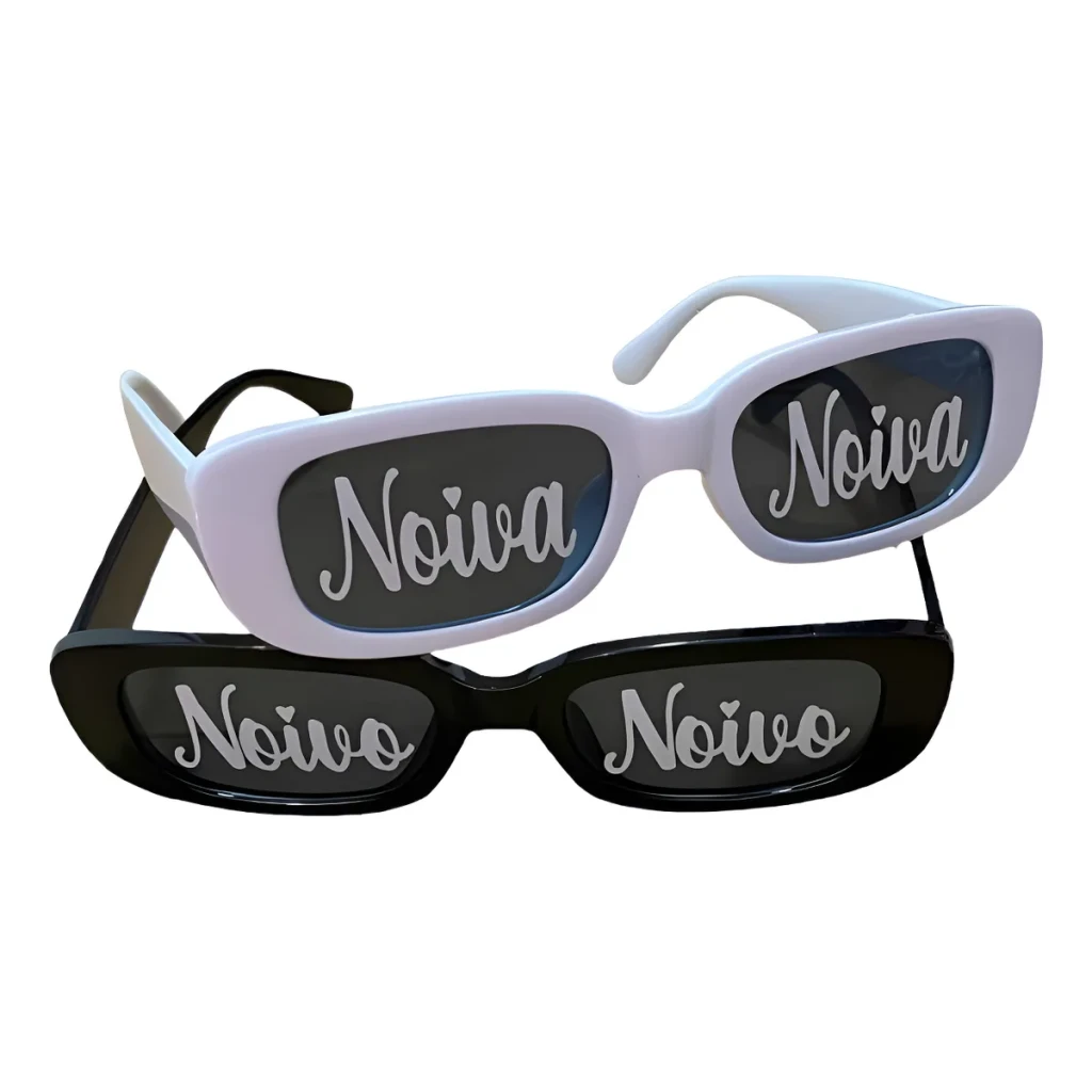 Adicione um toque especial à sua festa de casamento com este kit de óculos retrô personalizados para noiva e noivo. Feitos com adesivo vinil na cor branca, eles são duráveis e não desbotam.