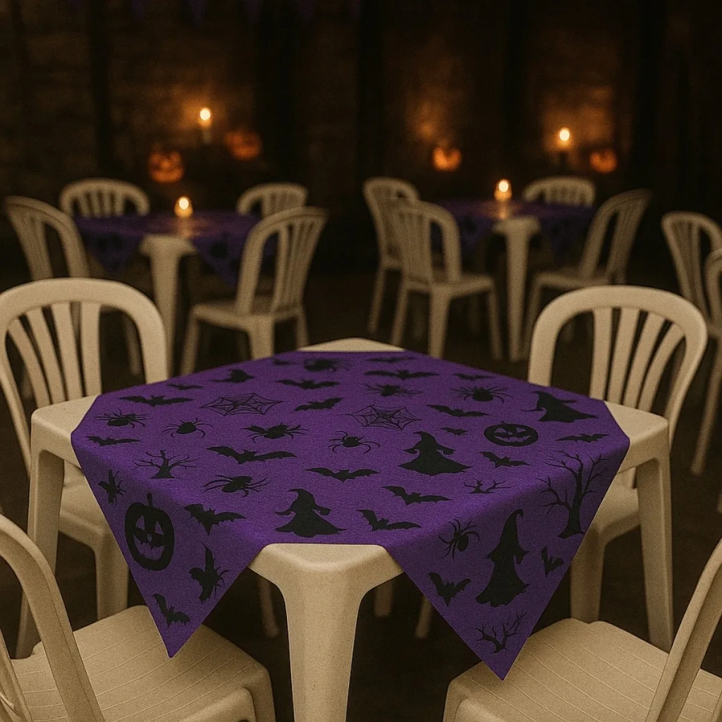 Transforme sua festa de Halloween com nosso kit de toalhas descartáveis, perfeito para dar um toque especial à sua decoração. Com 10 unidades de toalhas de 80 cm x 80 cm, suas mesas ficarão incríveis e práticas.