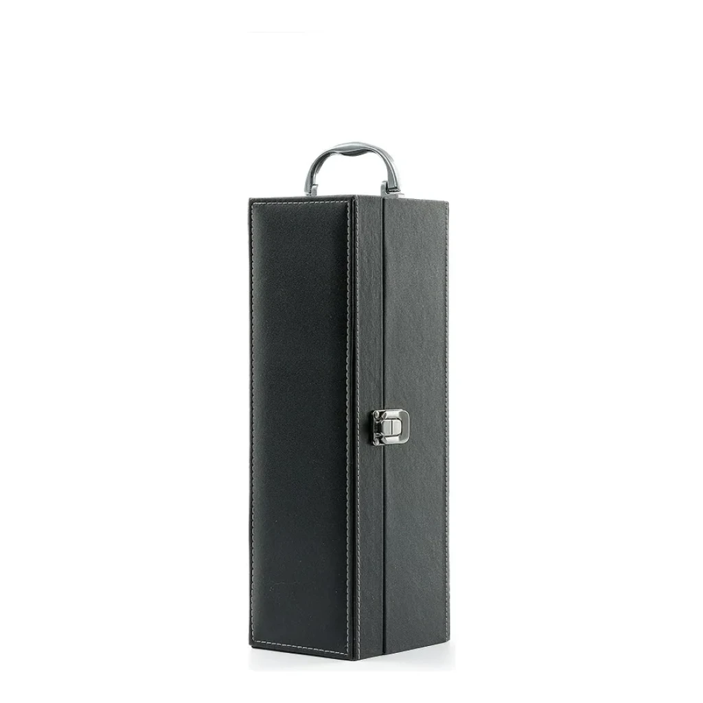 - Design Interno: Revestimento de veludo, com espaço para uma garrafa.