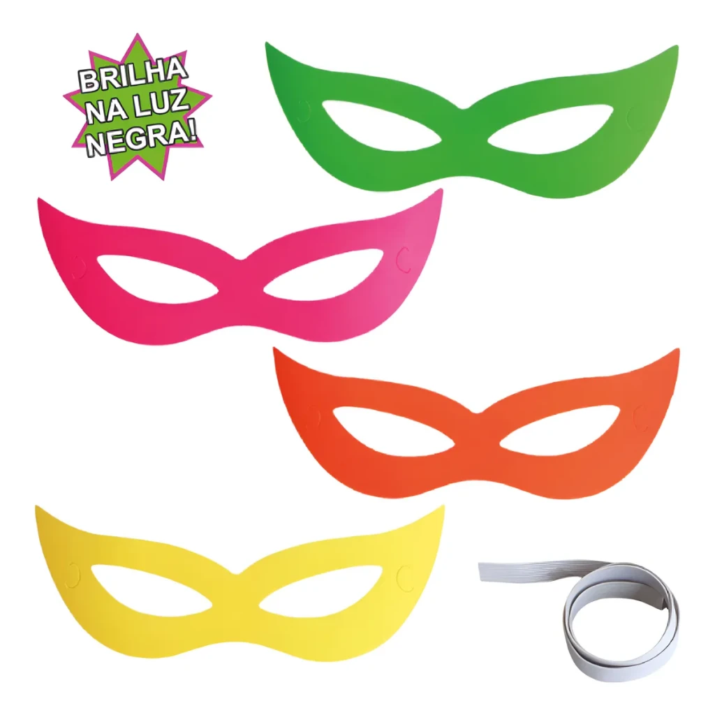 - 20 máscaras em cores e modelos sortidos que brilham sob luz negra