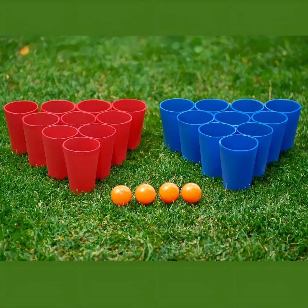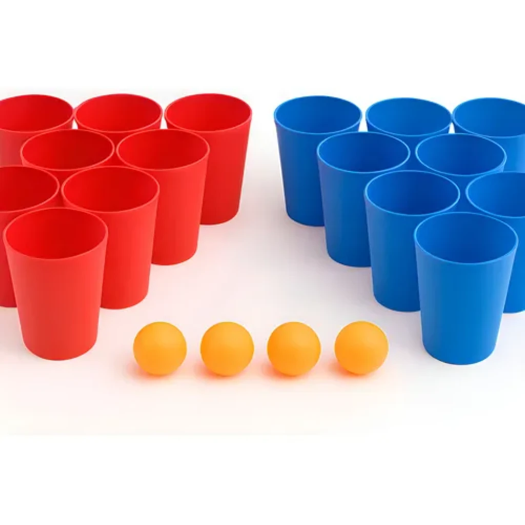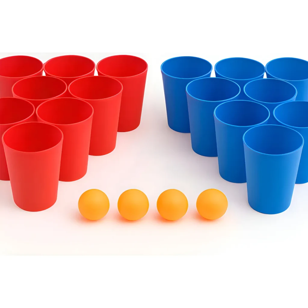 Kit Jogo Beer Pong com 20 Copos e 6 Bolas – Vermelho e Azul