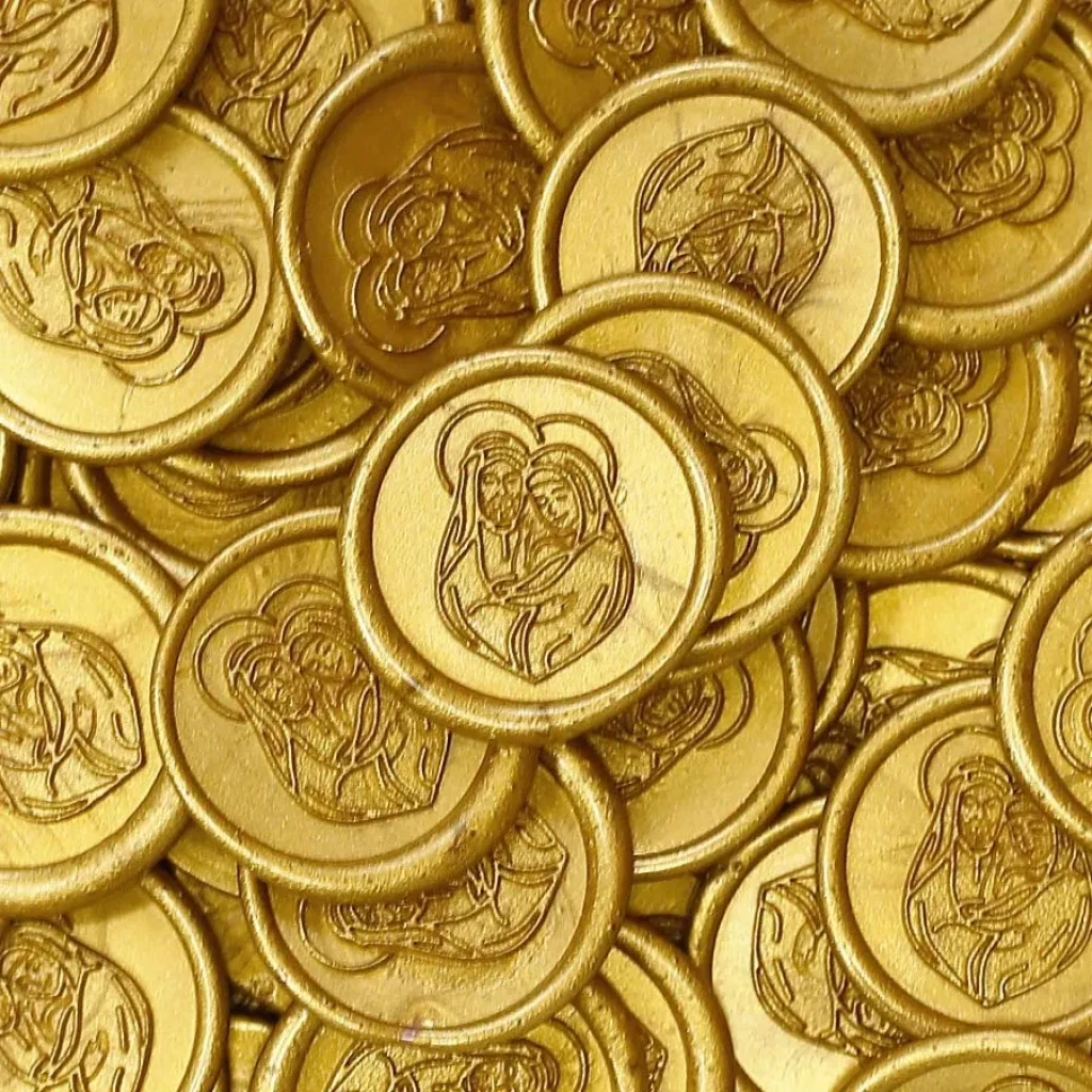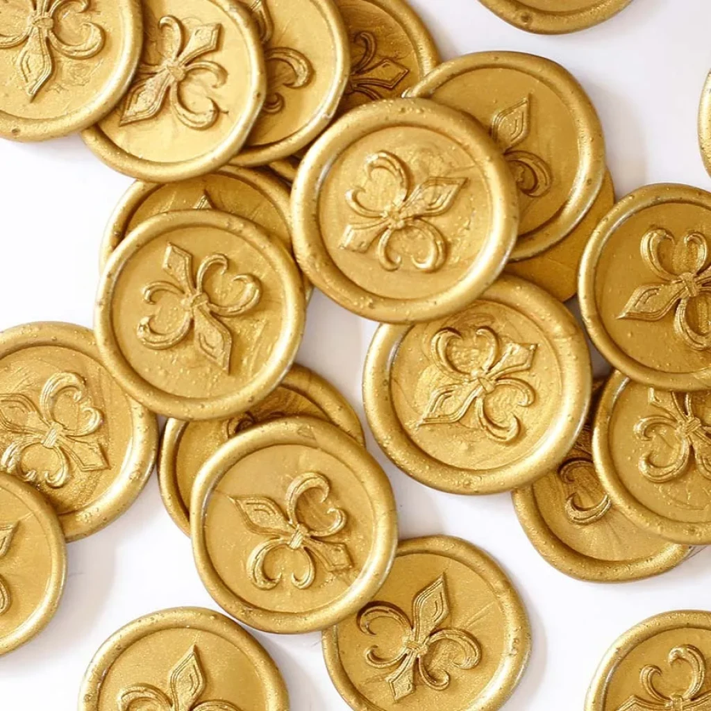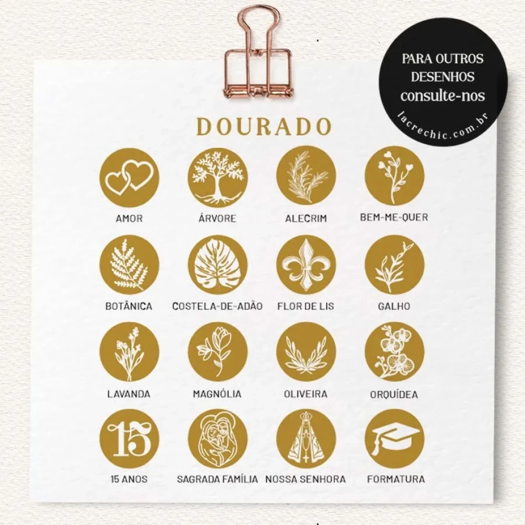 Transforme seus convites e lembrancinhas com nossos lacres de cera dourados. Prontos para uso, eles oferecem um toque de elegância e sofisticação.
