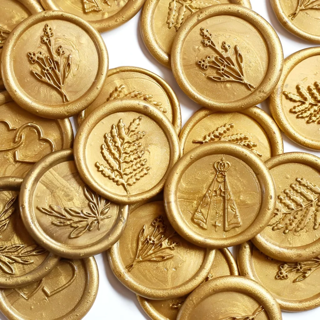 Os lacres de cera dourados são ideais para fechar envelopes, convites e personalizar lembrancinhas, proporcionando um visual sofisticado e único.