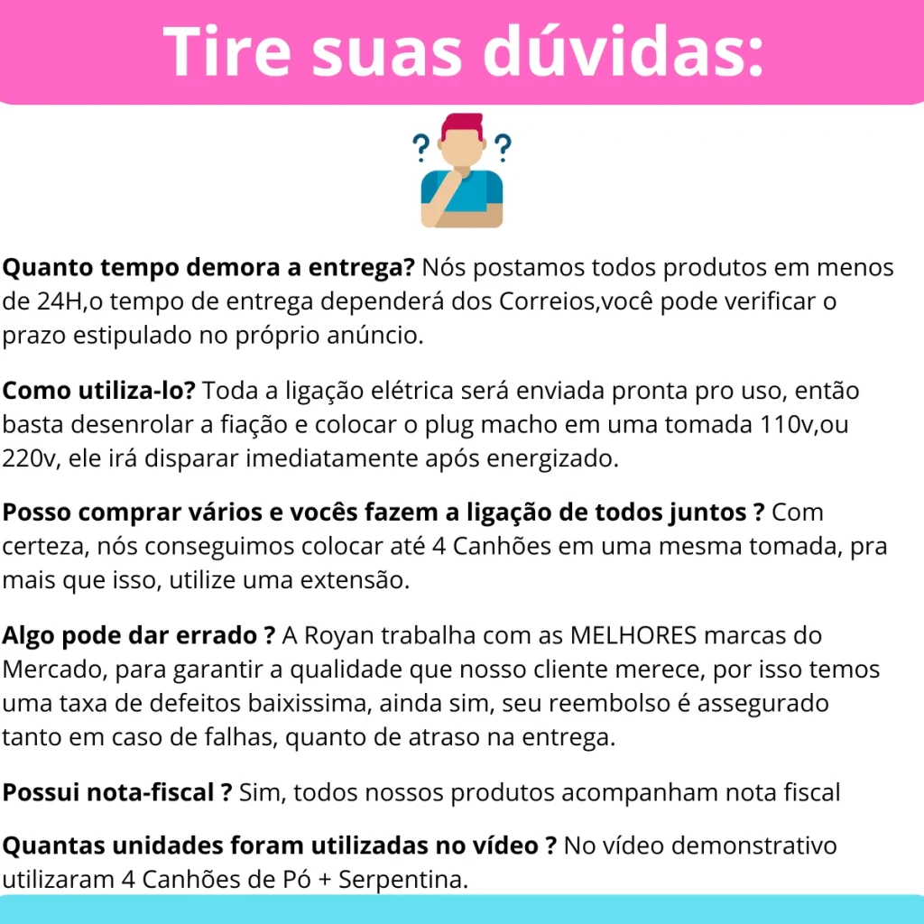 Com 170g de efeitos e um alcance de até 6 metros, é fácil de usar e garante um espetáculo visual incrível. Ideal para criar memórias emocionantes!