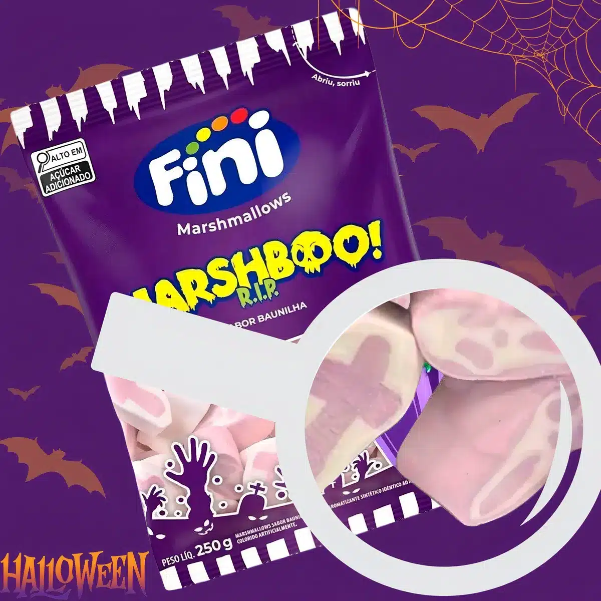 Marshmallow Halloween 250g — Formato Túmulo, Baunilha, Sem Glúten