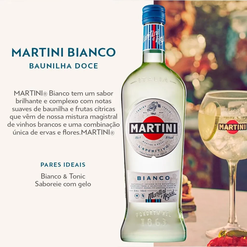 Desfrute do sofisticado Martini Bianco, um vermute branco italiano que combina notas suaves de baunilha e um perfil agridoce. Ideal para aprimorar seus coquetéis ou desfrutar como aperitivo refinado. Beba com responsabilidade.