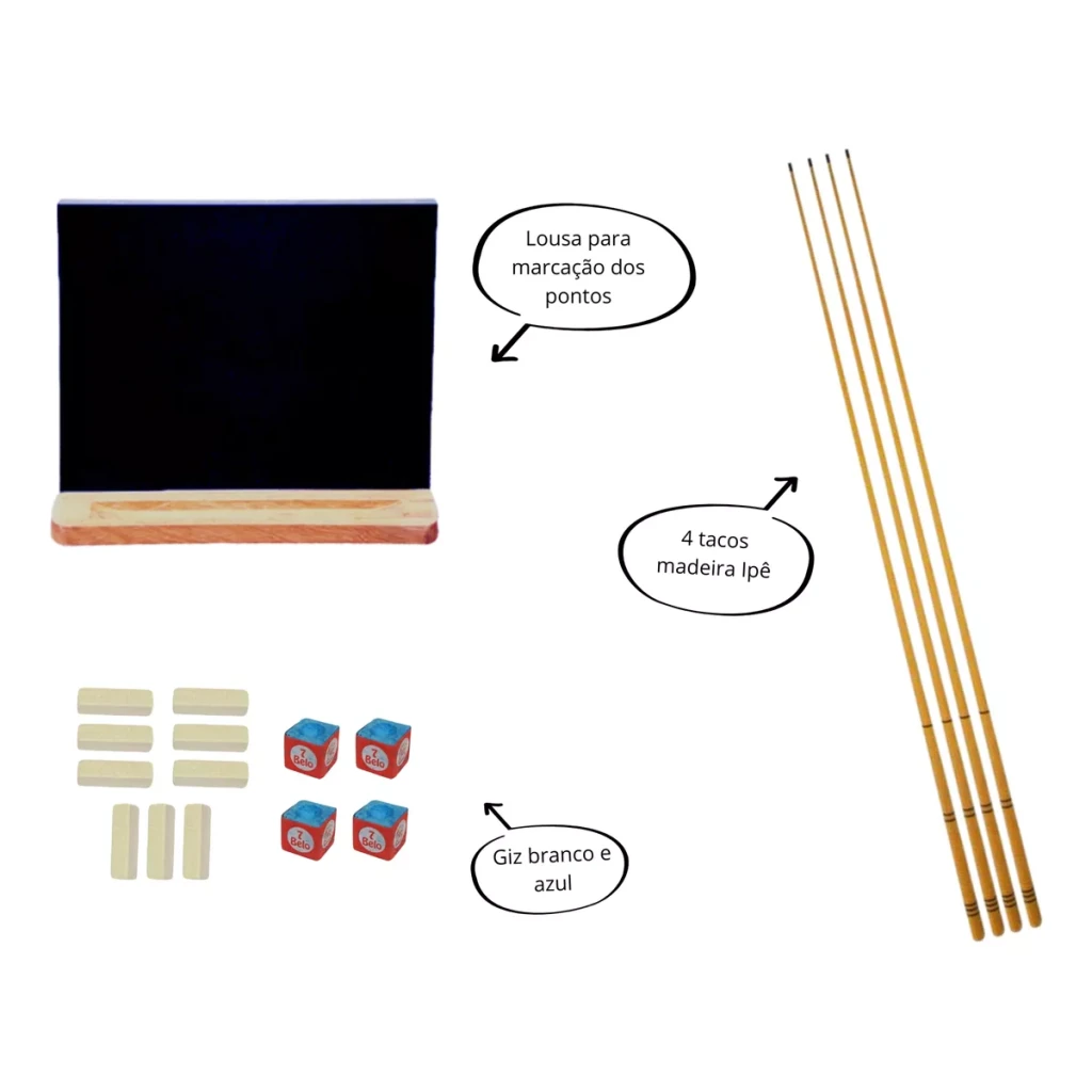 4 tacos ,BolaBranca ,Giz ,kit bolas mata-mata ,kit bolas numeradas ,lousa |