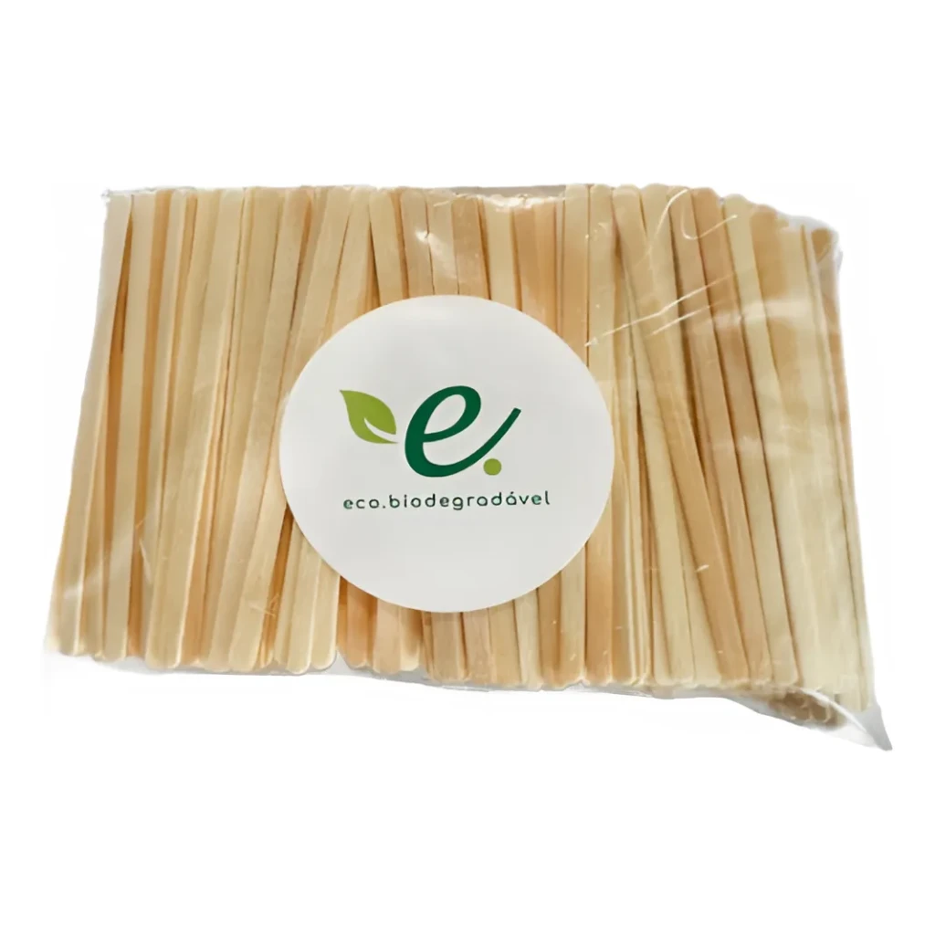 O kit contém 500 unidades feitas de madeira de Pinus, provenientes de manejo florestal controlado, garantindo um produto orgânico, biodegradável e compostável.