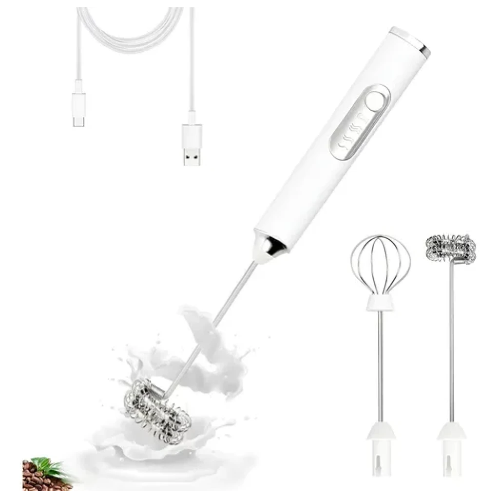 Descubra a praticidade do Mixer Misturador de Bebidas 2 em 1. Com design elegante em branco, ele é ideal para misturar bebidas e bater ovos com eficiência.