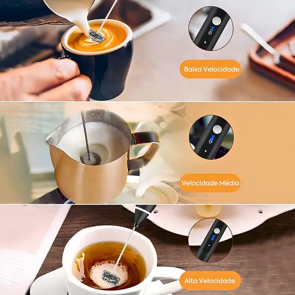 Descubra o mixer portátil B Basto, ideal para preparar bebidas cremosas como cappuccinos e milkshakes. Com motor potente de 3 velocidades e batedor tipo fouet, ele garante resultados incríveis.
