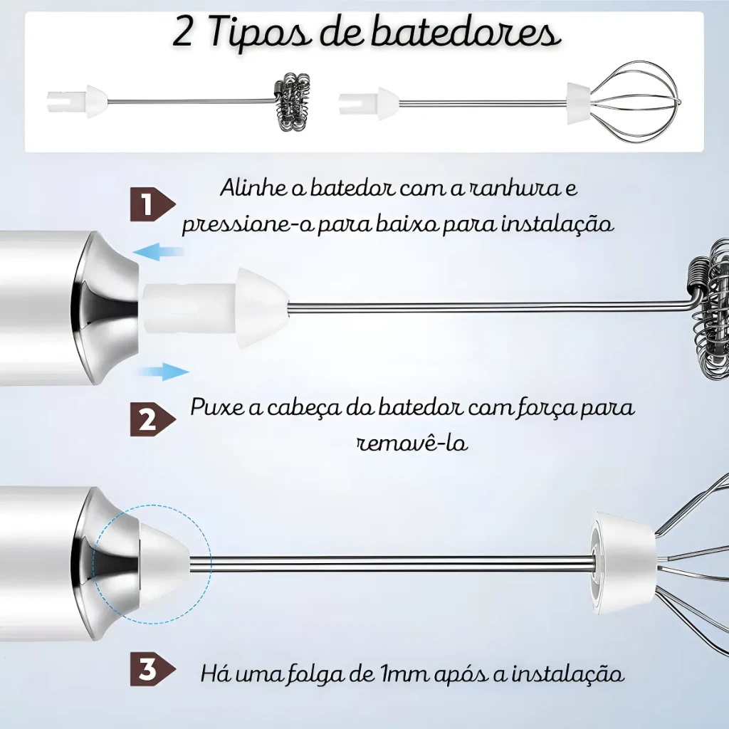 - Batedor exclusivo tipo fouet para maior cremosidade.