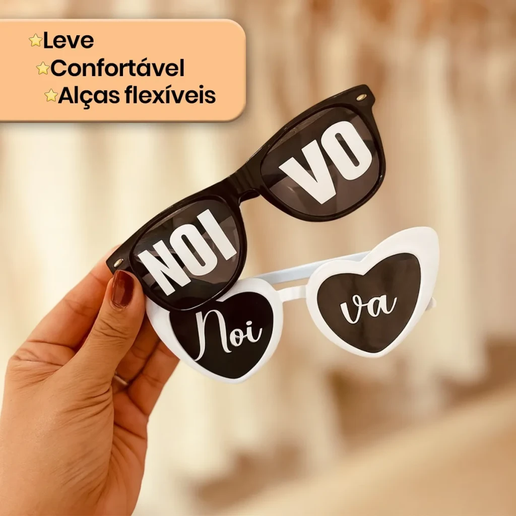 Com lentes escuras que oferecem proteção e um toque divertido, esses óculos são perfeitos para garantir fotos incríveis e lembranças marcantes!
