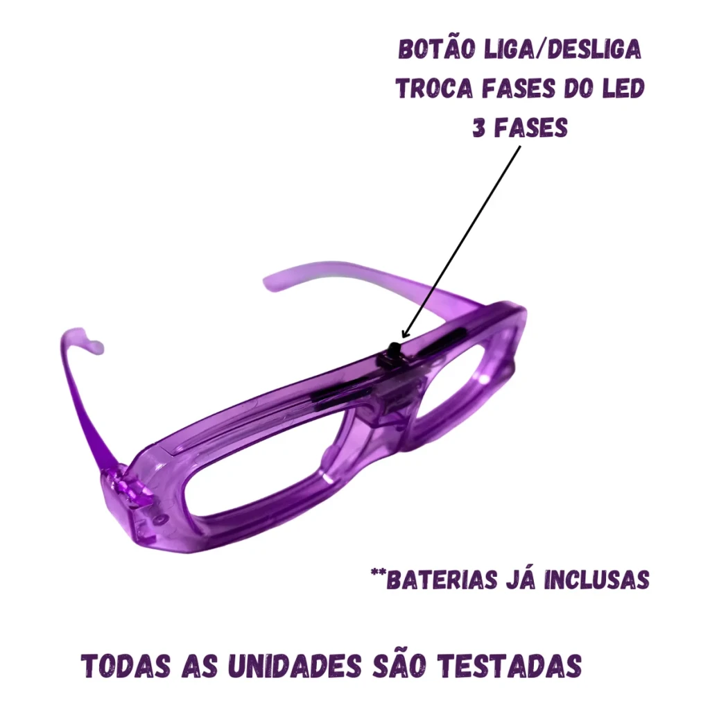 Transforme sua festa em um verdadeiro espetáculo com os óculos LED neon. Feitos de acrílico resistente, eles são ideais para aniversários, baladas e qualquer celebração.