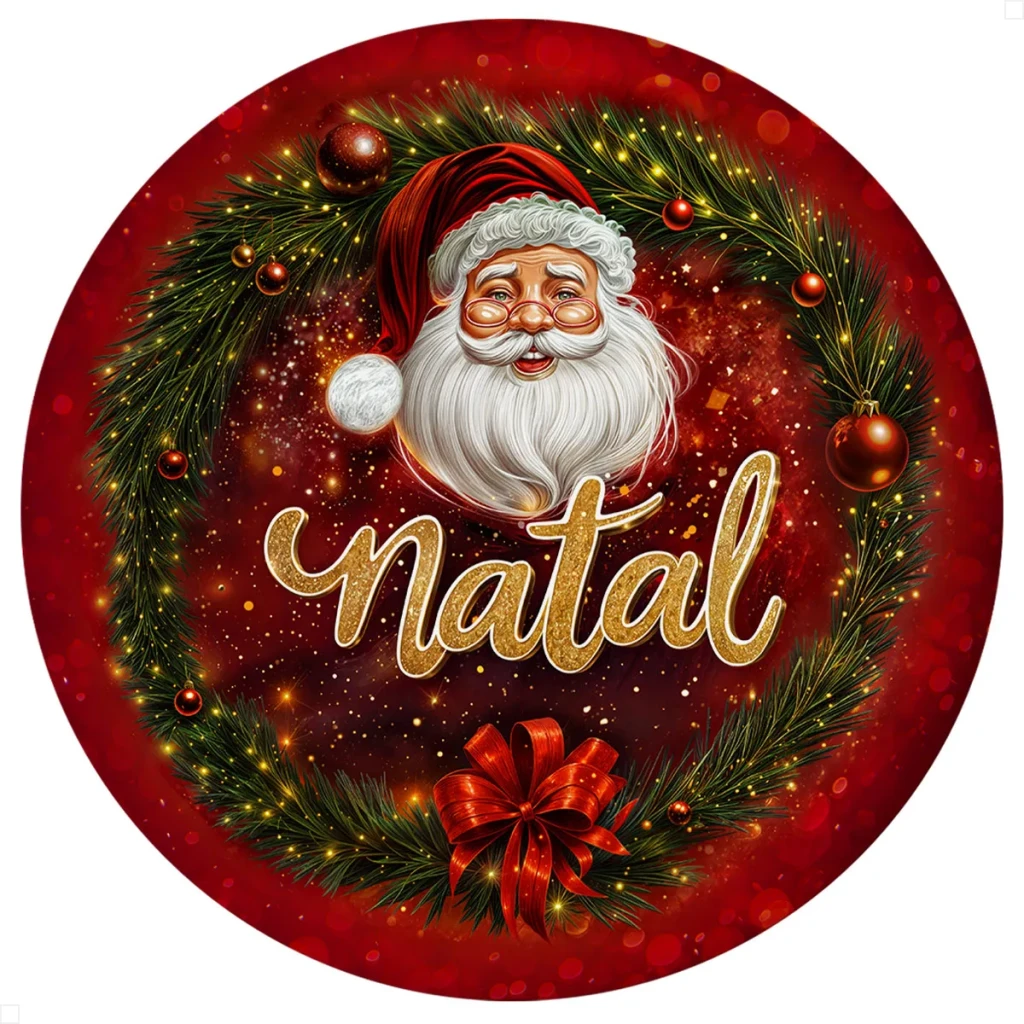 Painel Redondo de Natal – Decoração Festiva Papai Noel 1,50m