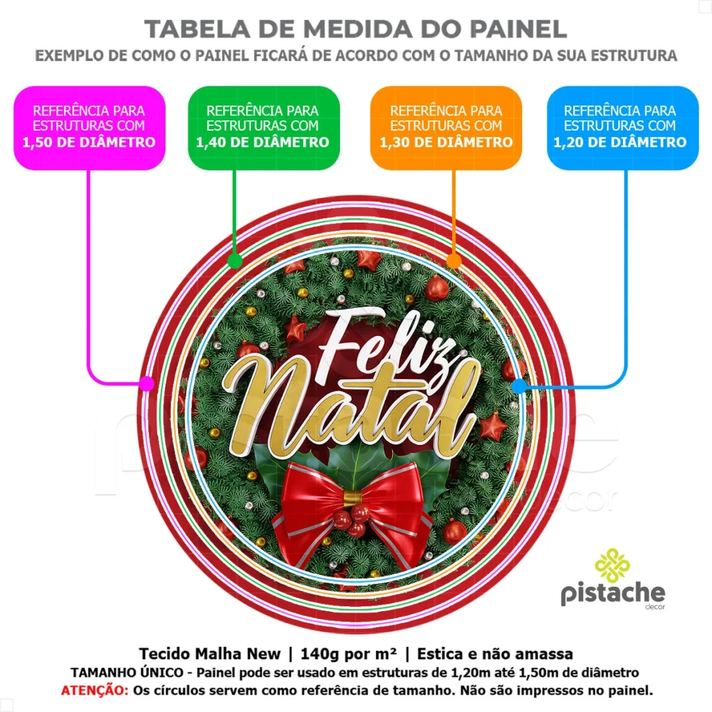 Transforme sua festa de Natal com o nosso Painel Redondo em Tecido de 1,50m. Feito em malha, ele é fácil de instalar e proporciona um visual vibrante à sua decoração.