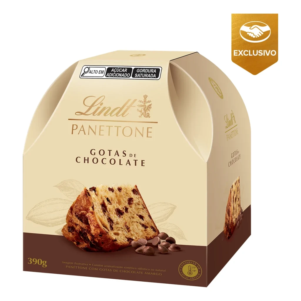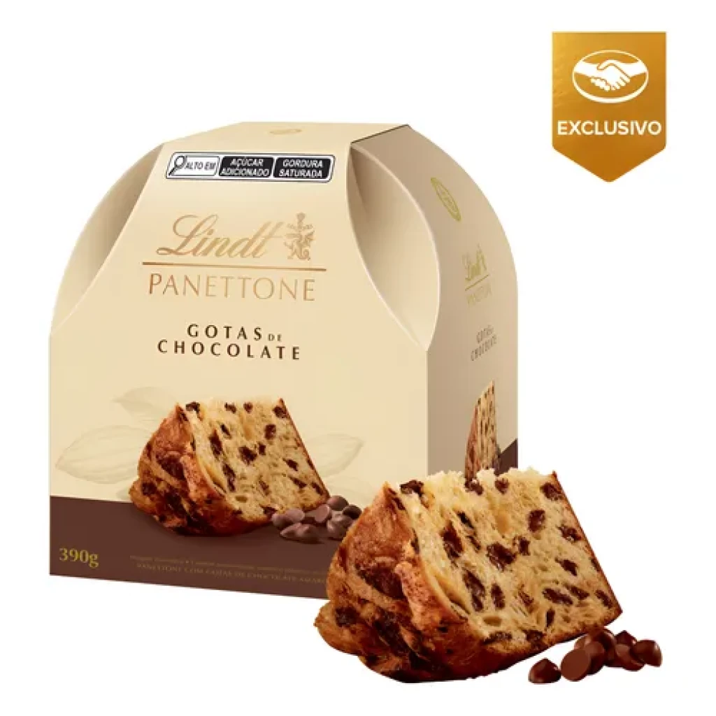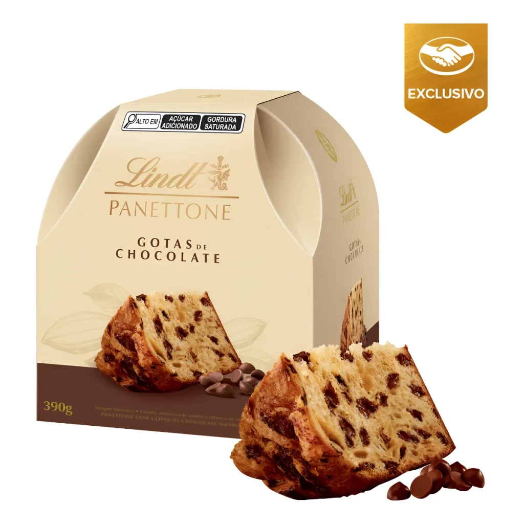 Experimente o delicioso Panettone Chocotone com Gotas de Chocolate Lindt, um sabor irresistível para a sua ceia.