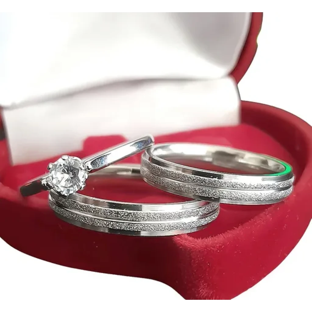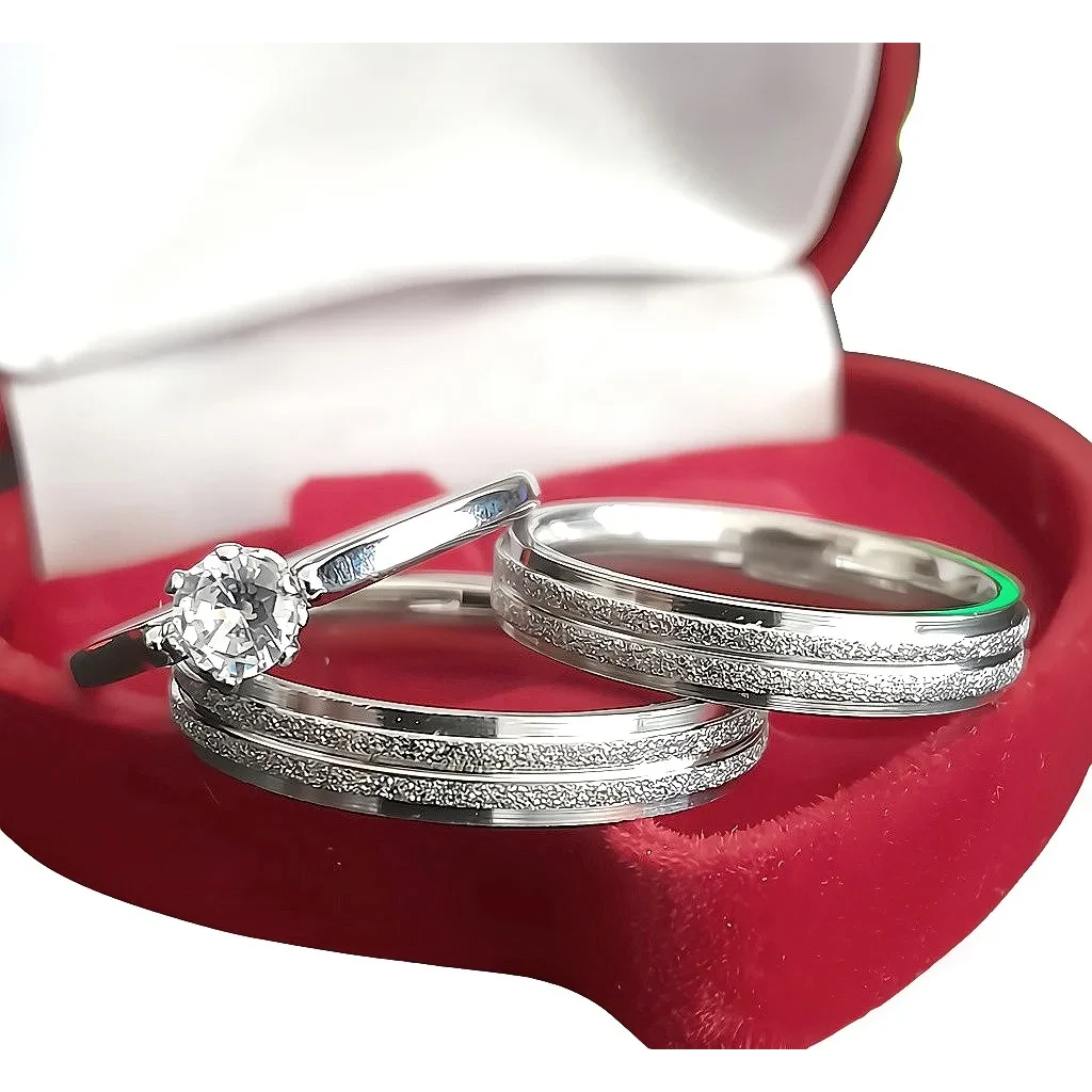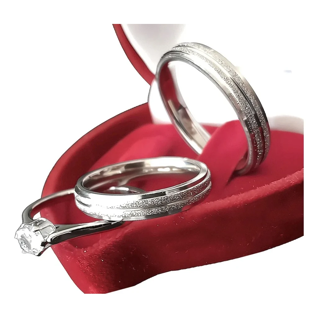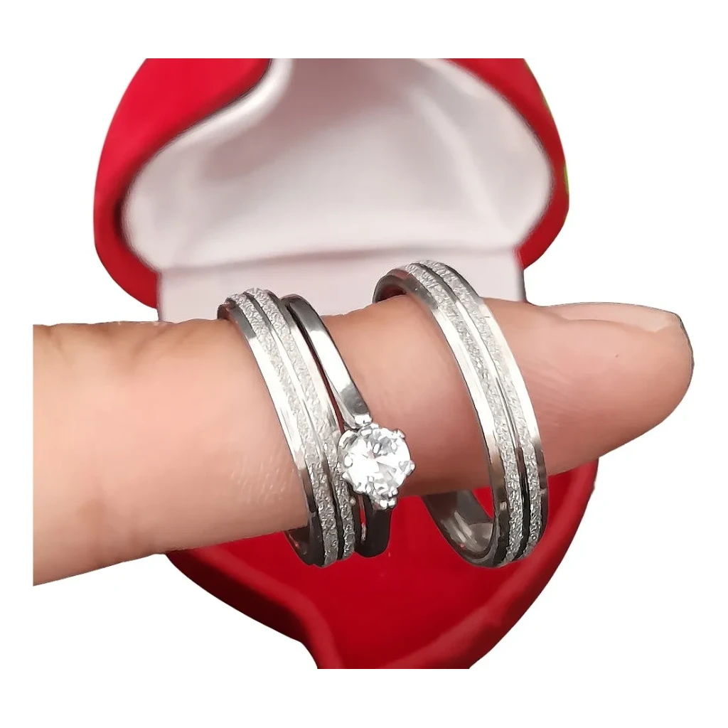Descubra o par perfeito de alianças de namoro em Aço Inoxidável, com 4mm de largura e um elegante anel solitário como brinde. Ideal para noivados e compromissos.