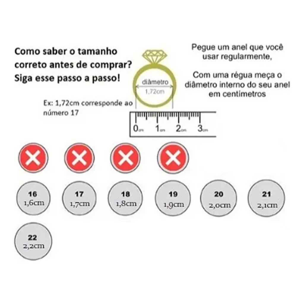 - Se não sabe o tamanho da sua aliança, consulte a imagem disponível no anúncio.