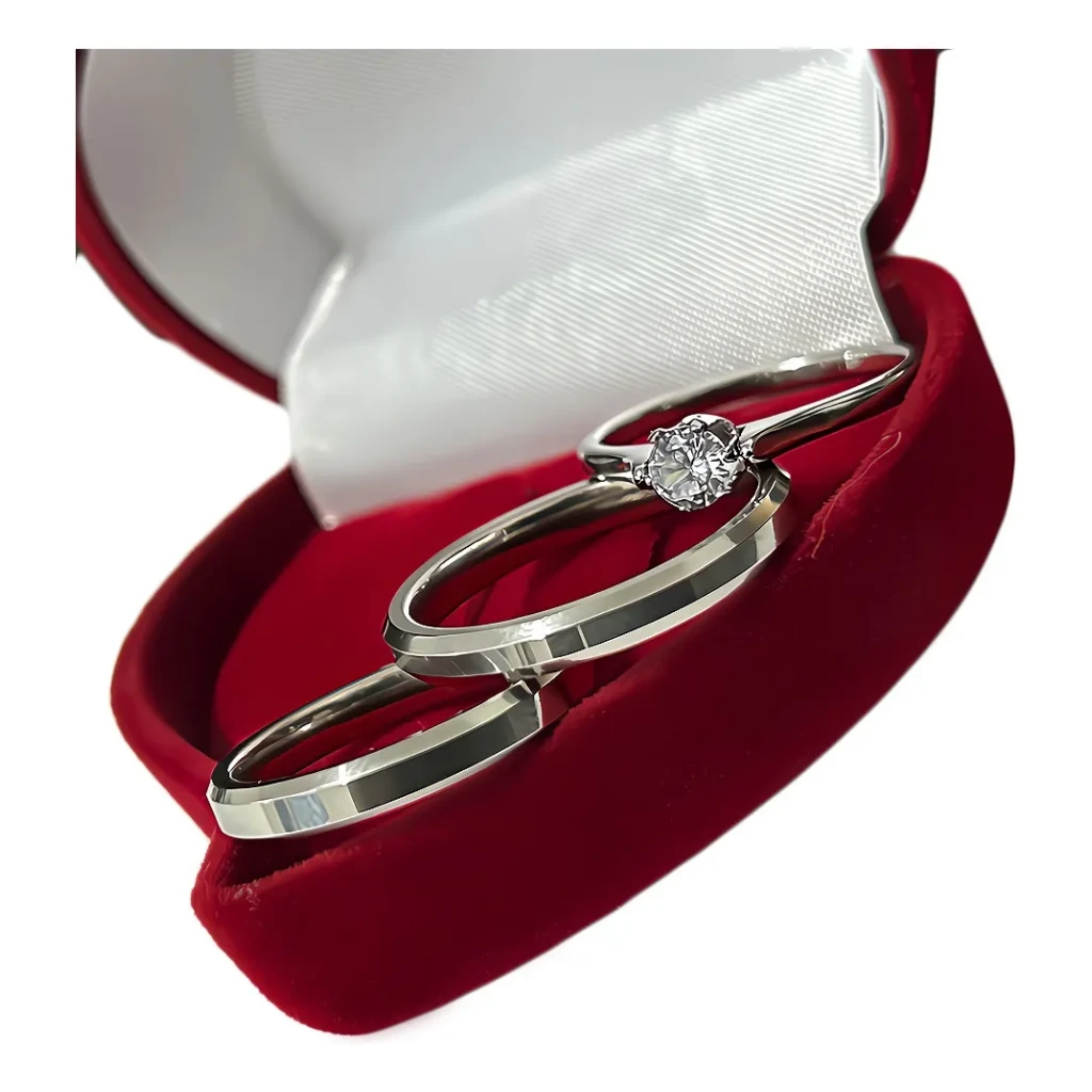 Com propriedades hipoalérgicas, as alianças não causam alergias e mantêm a cor, evitando o escurecimento. Além disso, são resistentes à corrosão e oxidação, não enferrujam, não arranham e mantêm seu brilho por muito mais tempo.