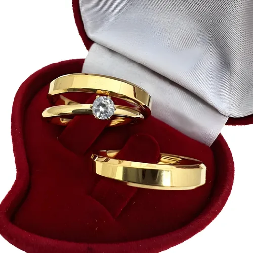 Seja o primeiro a avaliar “Par de Alianças para Casamento e Noivado Banhadas a Ouro 18k + Solitário” Cancelar resposta