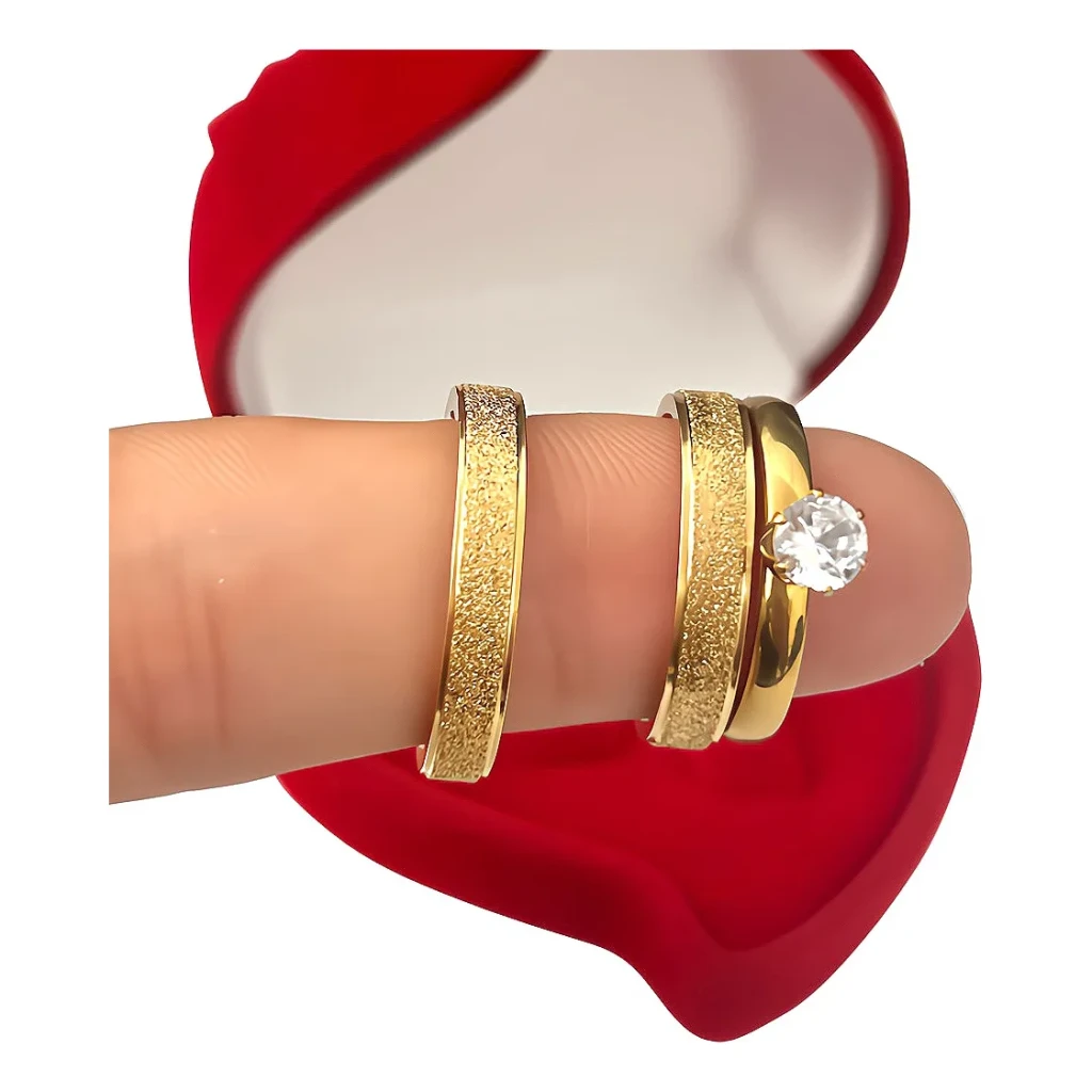 Par de Alianças para Namoro, Compromisso e Casamento + Anel Solitário
