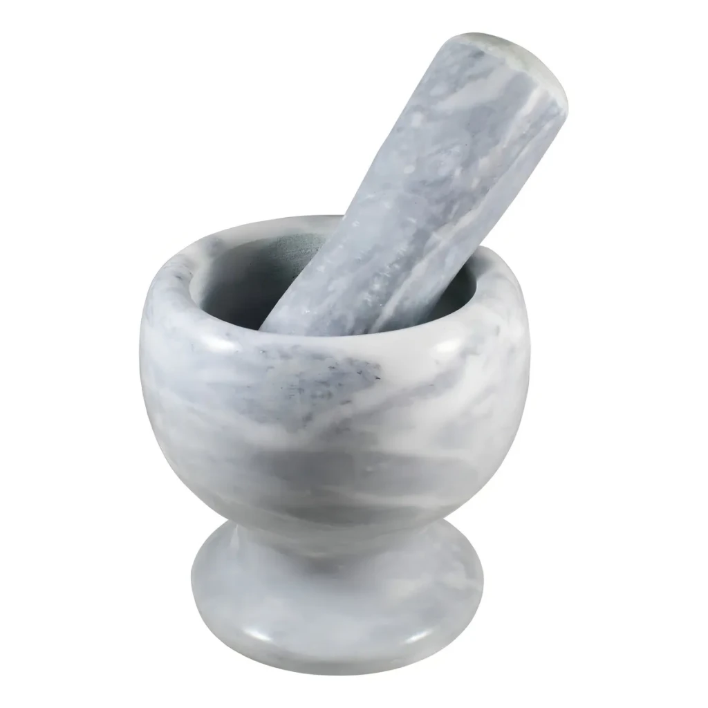 Descubra a eficiência do pilão de mármore cinza, ideal para moer alho e temperos com facilidade. Seu design robusto garante uma moagem perfeita.