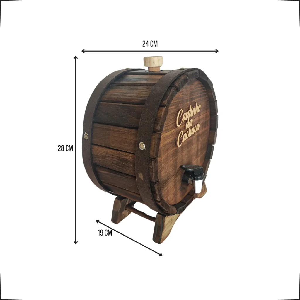 - Dimensões do Tonel: Comprimento de 19 cm, largura de 24 cm e altura de 28 cm.