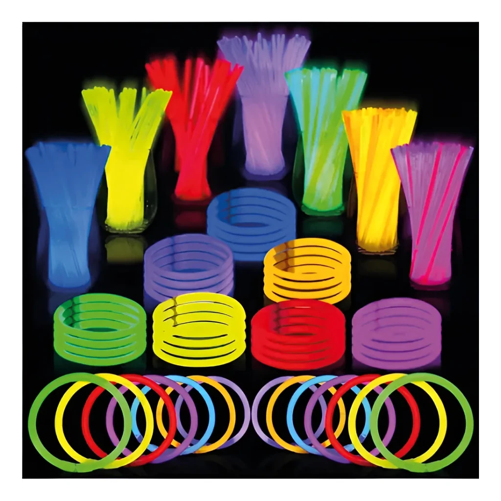 O pacote contém 2 tubos, cada um com 100 pulseiras em cores sortidas, garantindo surpresas e alegria para todos os convidados. Sem necessidade de pilhas, elas são ativadas pela luz LED, proporcionando um efeito visual incrível durante toda a noite.