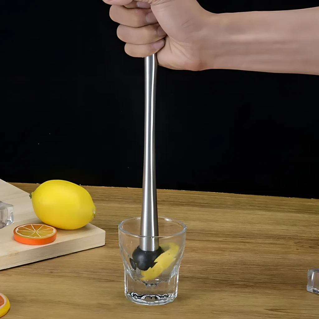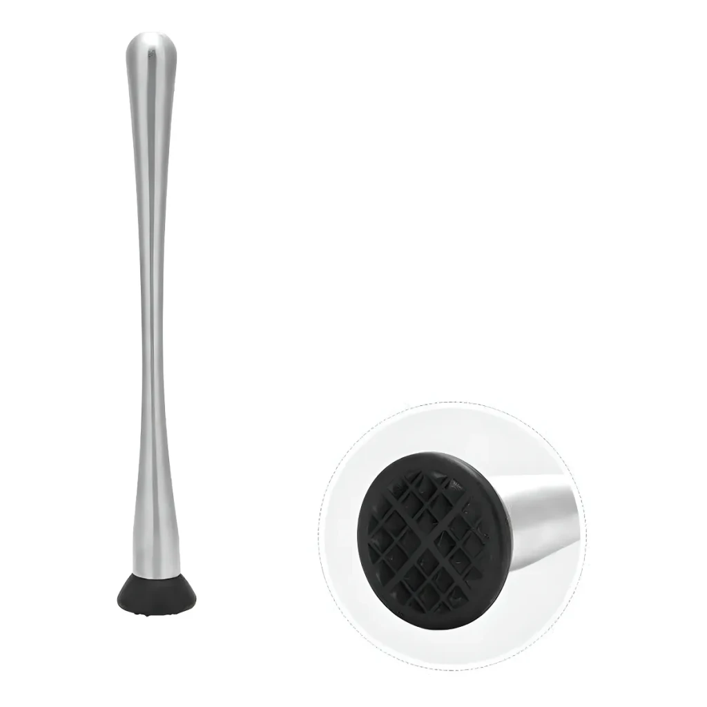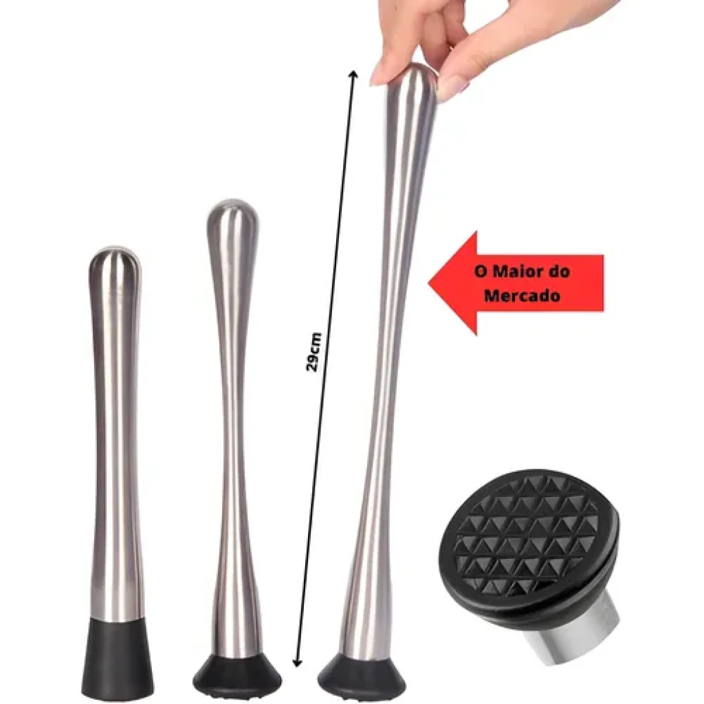 Com um design prateado elegante, ele não apenas melhora sua experiência de preparação de bebidas, como também adiciona um toque de sofisticação ao seu bar. Seu comprimento total de 29 cm e a ponta de plástico com diâmetro de 4 cm permitem macerar frutas com facilidade sem comprometer a integridade dos copos.