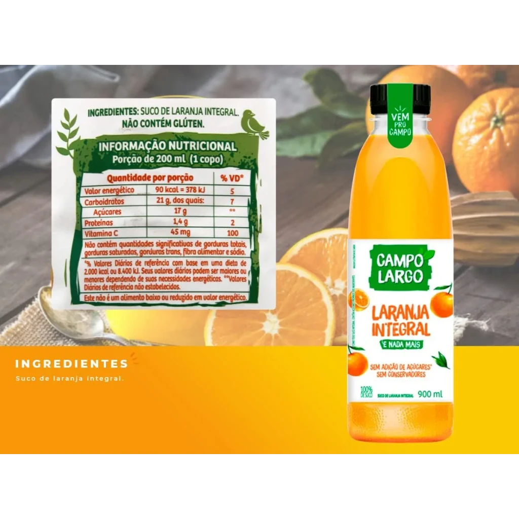 Suco de Laranja Integral Campo Largo 900ml – Natural e Sem Glúten
