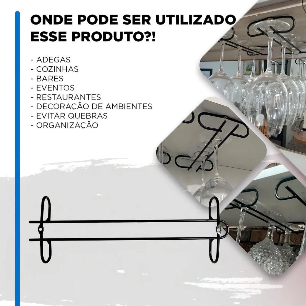 Fácil de instalar, ele possui um design suspenso e elegante, perfeito para otimizar espaços e destacar suas taças favoritas.