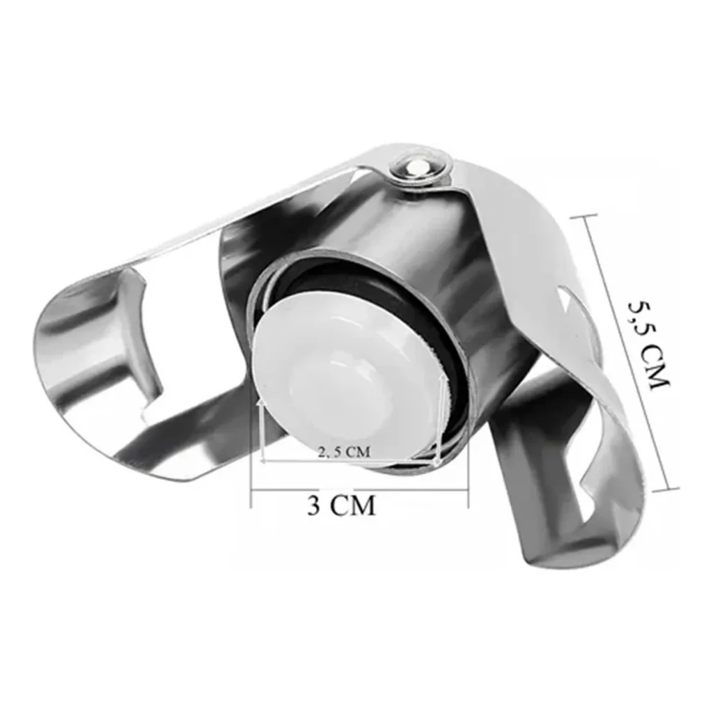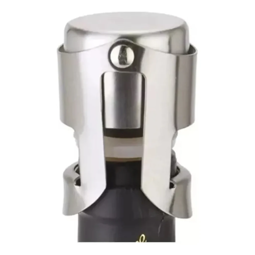 Mantenha suas bebidas espumantes frescas com esta tampa de pressão em aço inoxidável. Ideal para garrafas de champanhe, espumante e vinho, proporciona vedação segura e eficiência.
