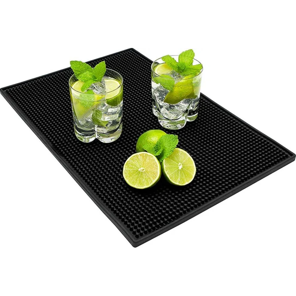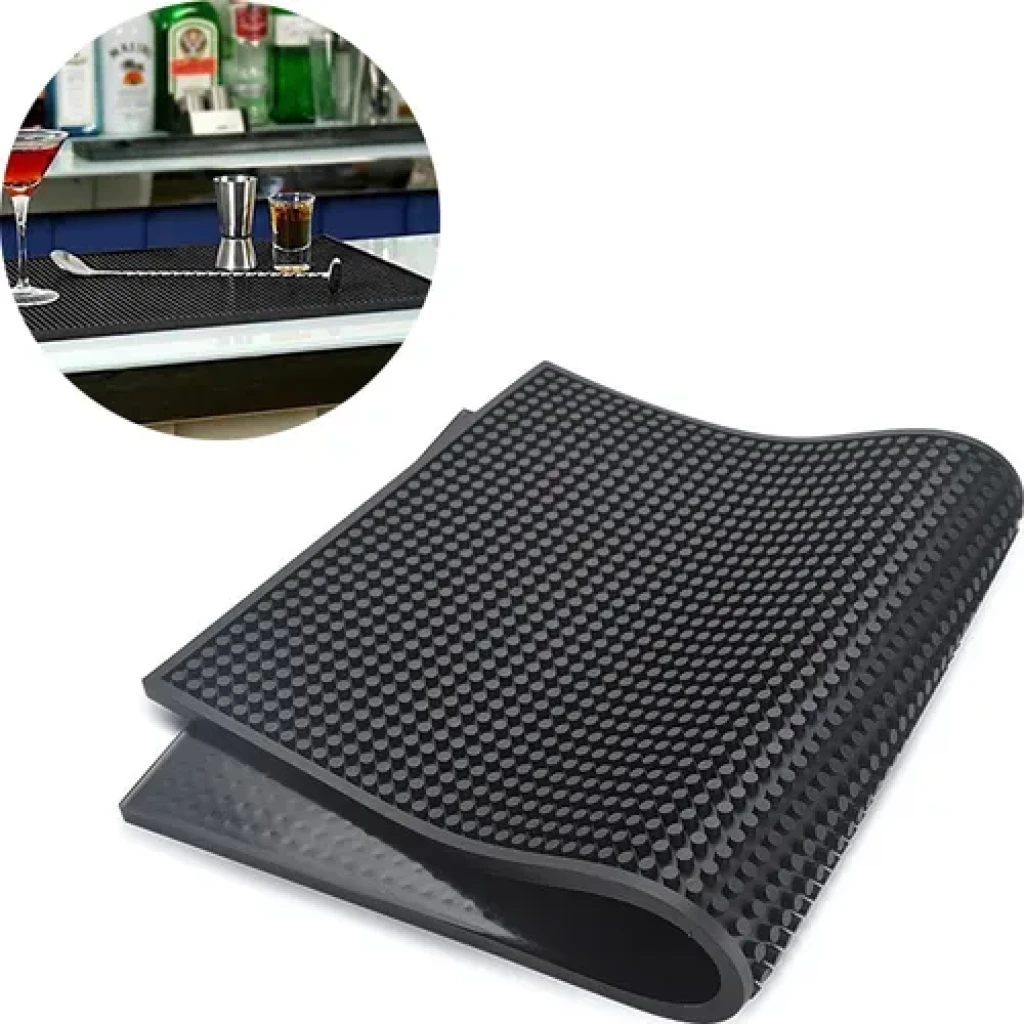 Ideal para bares, cozinhas e áreas gourmet, este tapete antiderrapante e flexível mantém o ambiente limpo e facilita a preparação de bebidas.