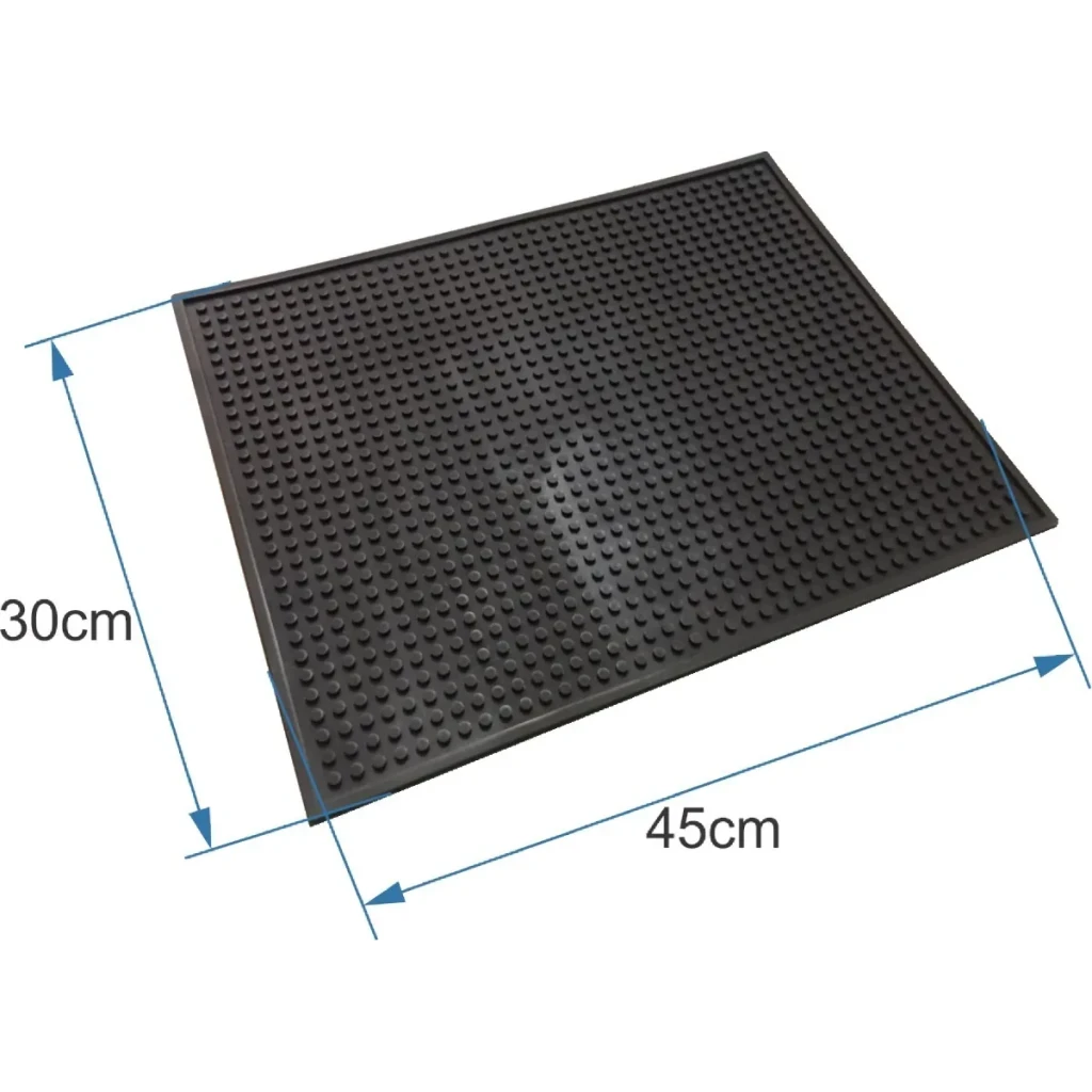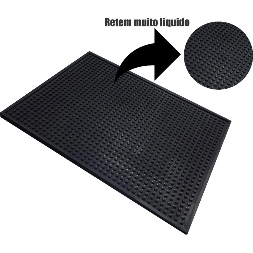 O tapete Barmat, medindo 45x30x0,8cm, é fabricado em borracha de alta qualidade, proporcionando uma superfície antiderrapante ideal para apoiar copos, latas e garrafas. Este produto é um excelente acessório para bares, áreas gourmet, lanchonetes e até mesmo para uso doméstico.