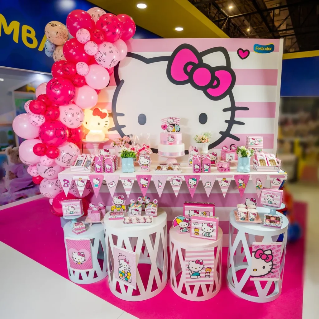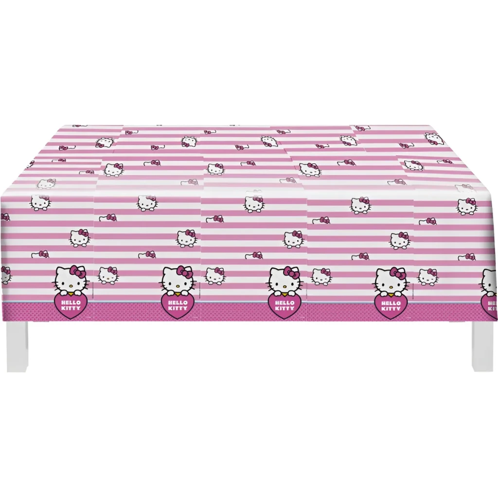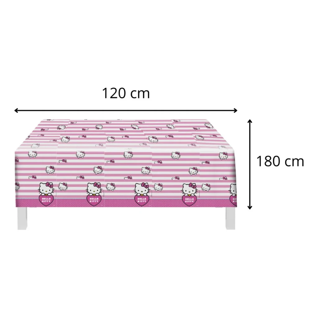 Transforme a sua festa com a encantadora toalha de mesa personalizada com o tema Hello Kitty. Ideal para cobrir mesas de bolo e doces, ela traz um toque especial à decoração.