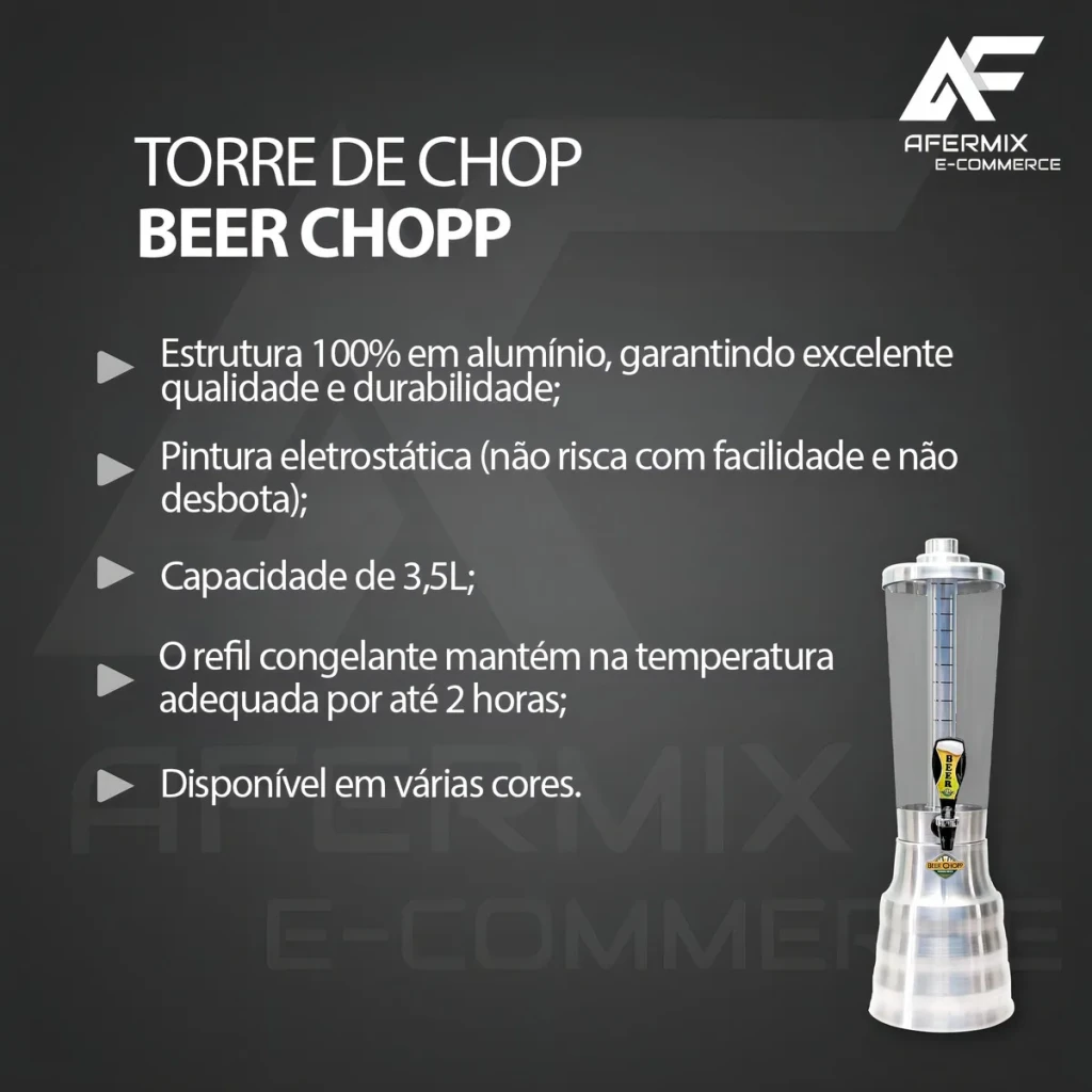 Design exclusivo de torre de chopp;