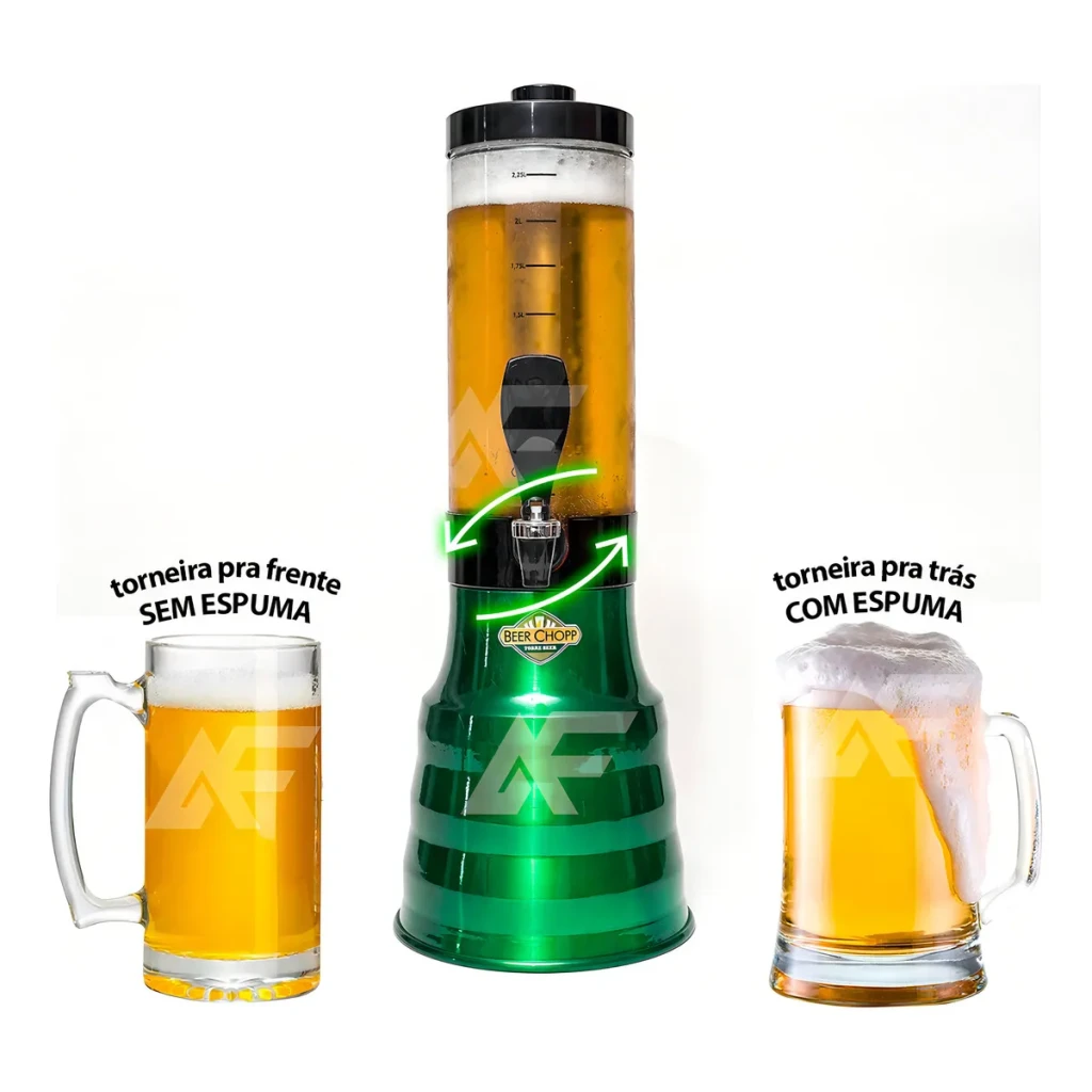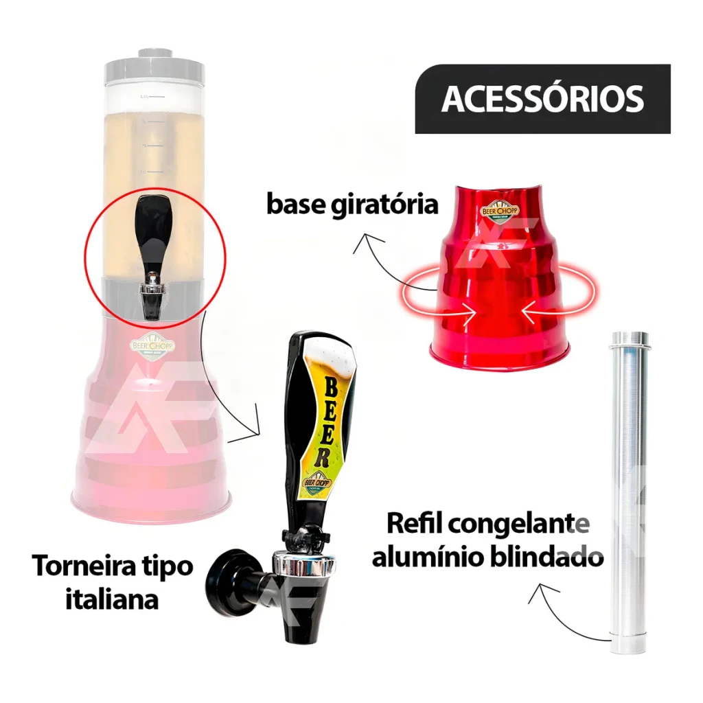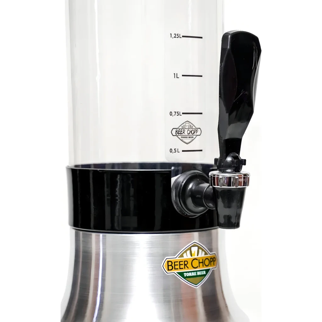 Desfrute de suas bebidas favoritas com estilo usando a Torre de Chopp de 2 Litros. Feita 100% em alumínio, garante durabilidade e mantém sua bebida gelada por até 2 horas.