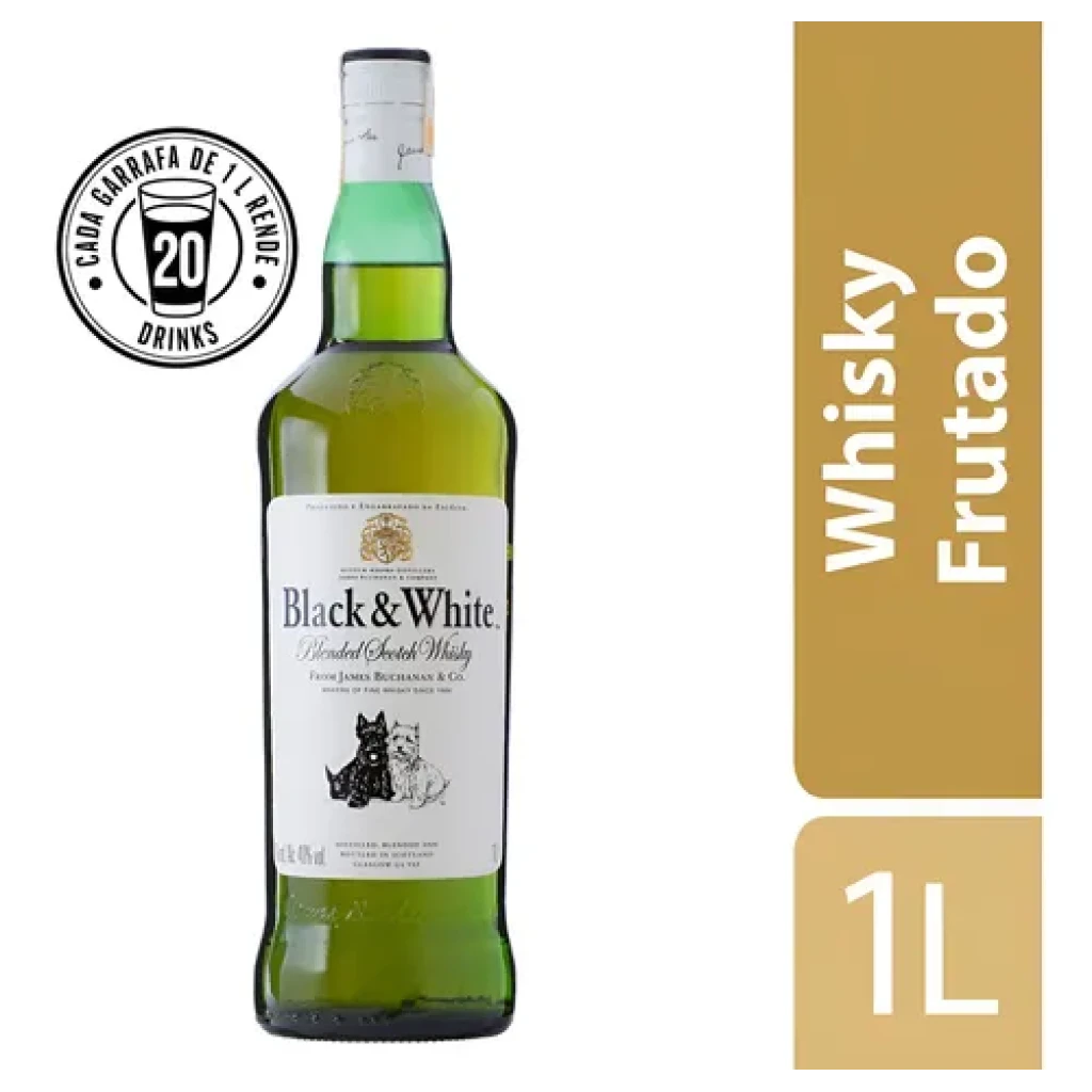 O Whisky Black & White 1L é uma celebração da herança e qualidade escocesas. Criado por James Buchanan, este blend combina os melhores maltes e grãos para oferecer uma experiência de sabor incomparável.