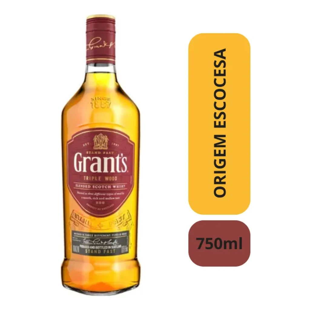 Descubra o Whisky GRANTS Triple Wood, um blend escocês de excelência, com 750 ml de puro sabor. Envelhecido em três tipos de madeira, proporciona uma experiência única ao paladar.