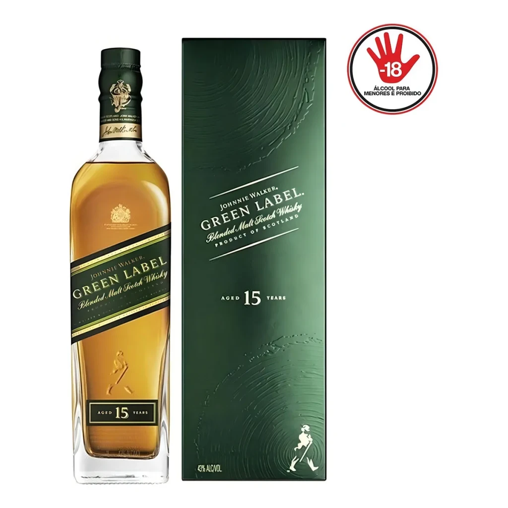 O Johnnie Walker Green Label é um whisky de luxo que combina o melhor dos maltes escoceses, cada um envelhecido por pelo menos 15 anos. Com uma graduação alcoólica de 43%, oferece uma experiência rica e encorpada.